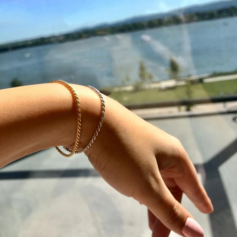 Женский браслет серебряного цвета, золотая цепочка с фианитами