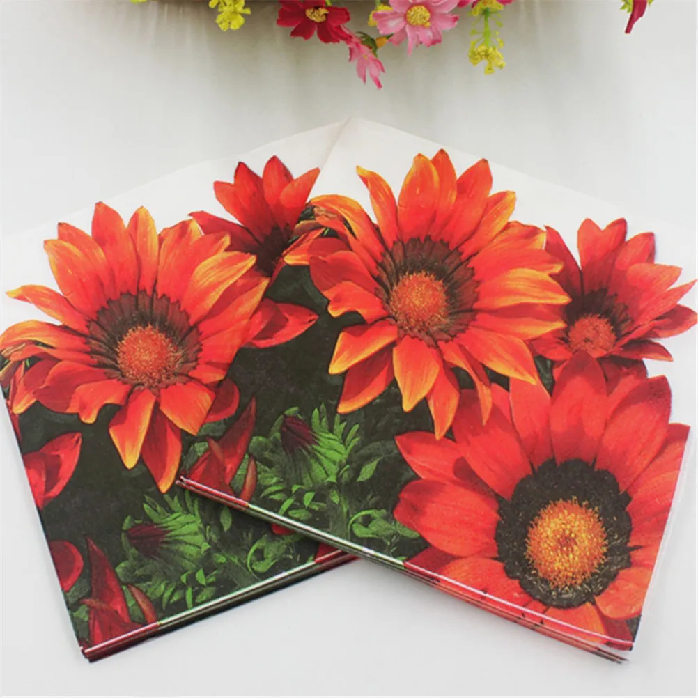 Салфетки бумажные с подсолнухами, 33 х 33 см, 20 шт.партия, шт.упак.