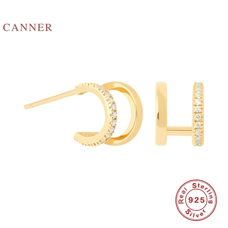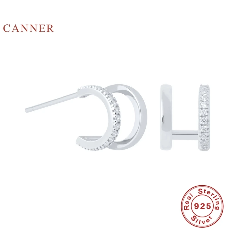 Женские серьги-гвоздики CANNER из стерлингового серебра 925 пробы с двойным бриллиантом, ювелирные украшения