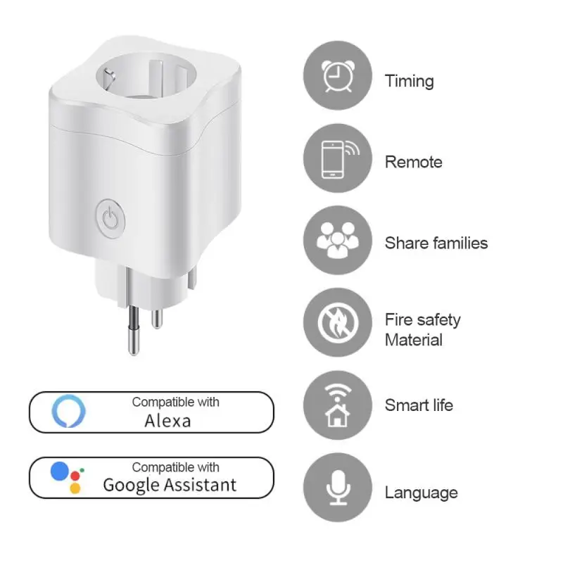 Tuya WiFi смарт-розетка ЕС 10A 220V Мощность монитор таймер приложения SmartLife Управление умный дом работы с Alexa и Google Assistant