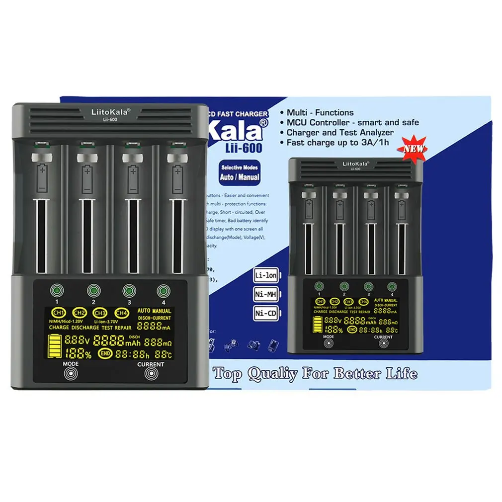 Lii-600 Батарея Зарядное устройство для батарей Li-Ion (литий-ионных) 3,7 V и никель-металл-гидридного 1,2 V Батарея подходит для 18650 26650 21700 26700 AA AAA адаптер