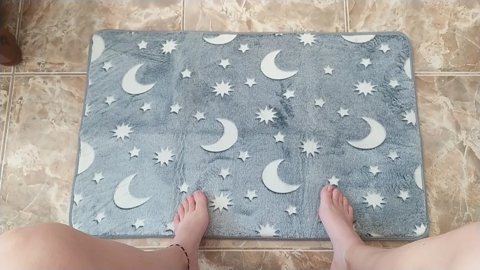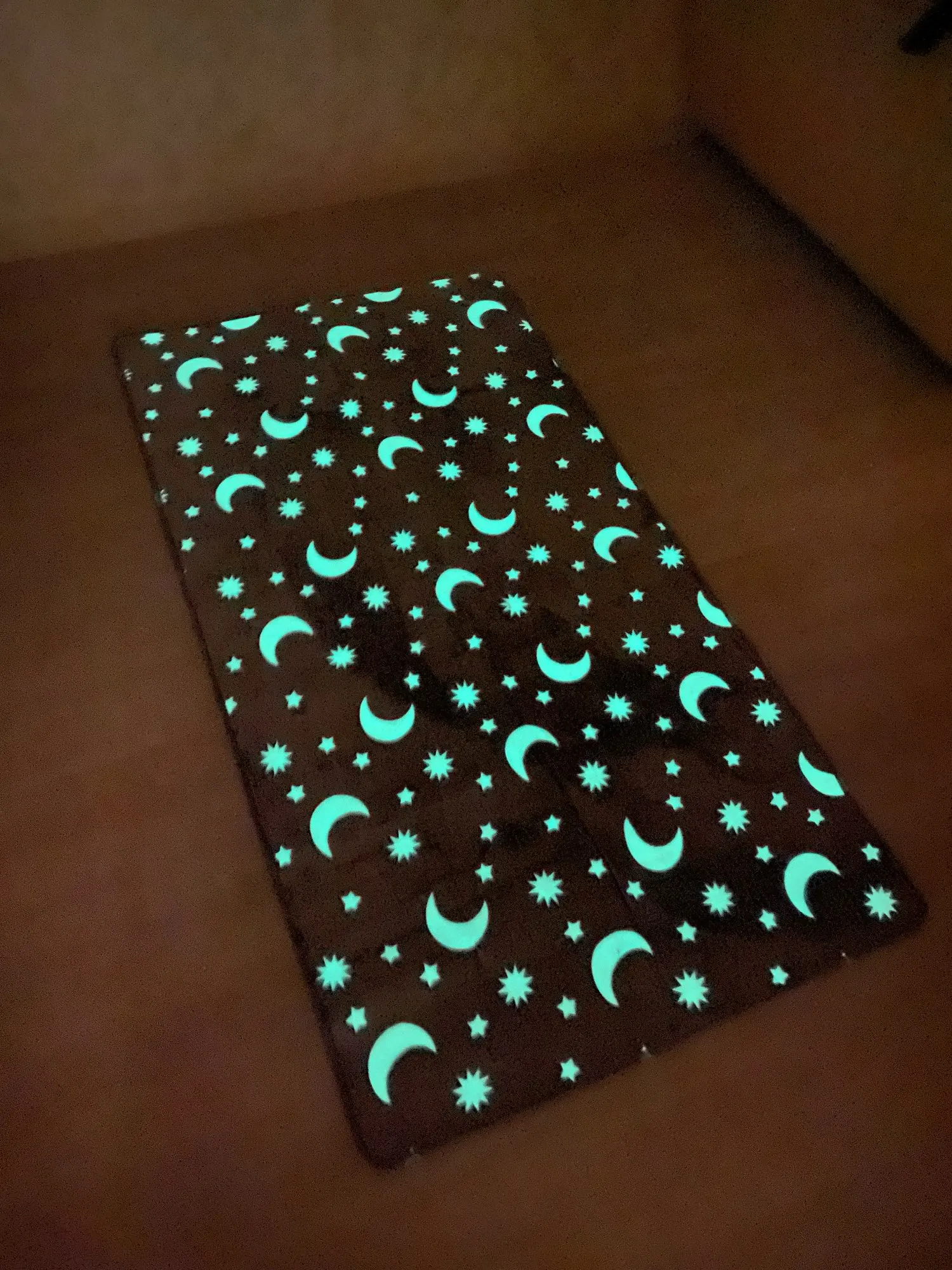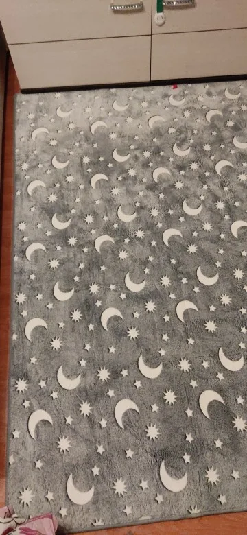 Коврик понравился, доставка быстрая, на ощупь мягкий приятный, в темноте светится, всё устраивает, спасибо.
