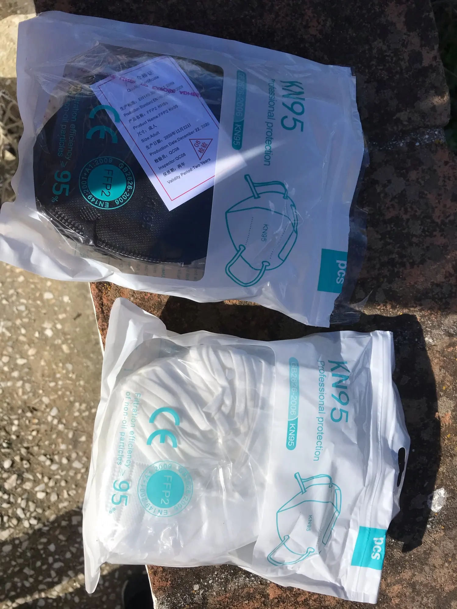 Eye, я купил черные и не поставляются с одобрением ЕС, как указано в описании изделия, ni Ffp2 означает только KN95, по сравнению с другими, у меня есть Ffp2, вы намного тоньше, Я уверен, что они хороши.