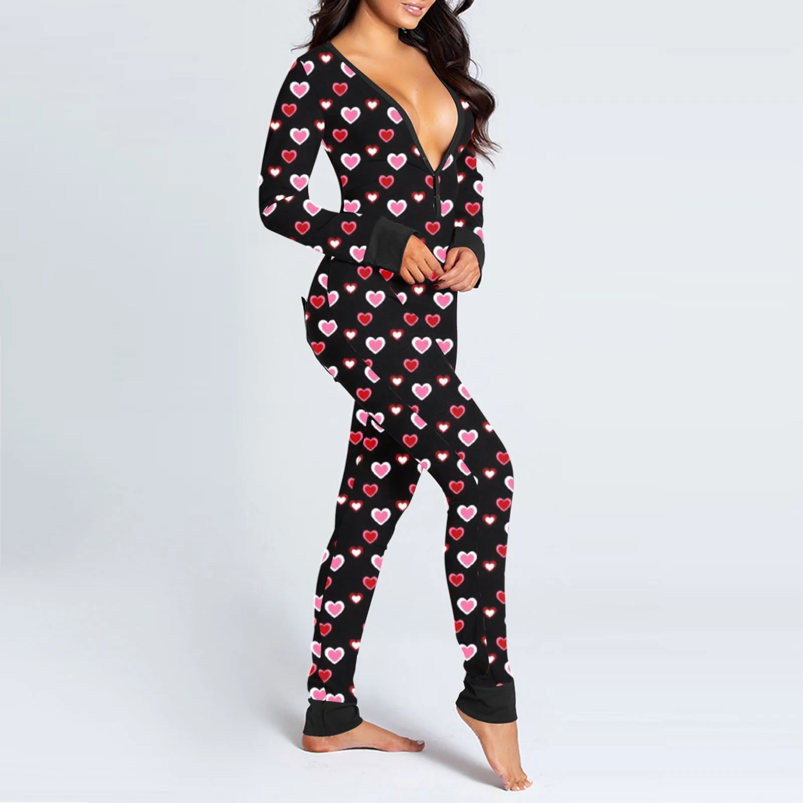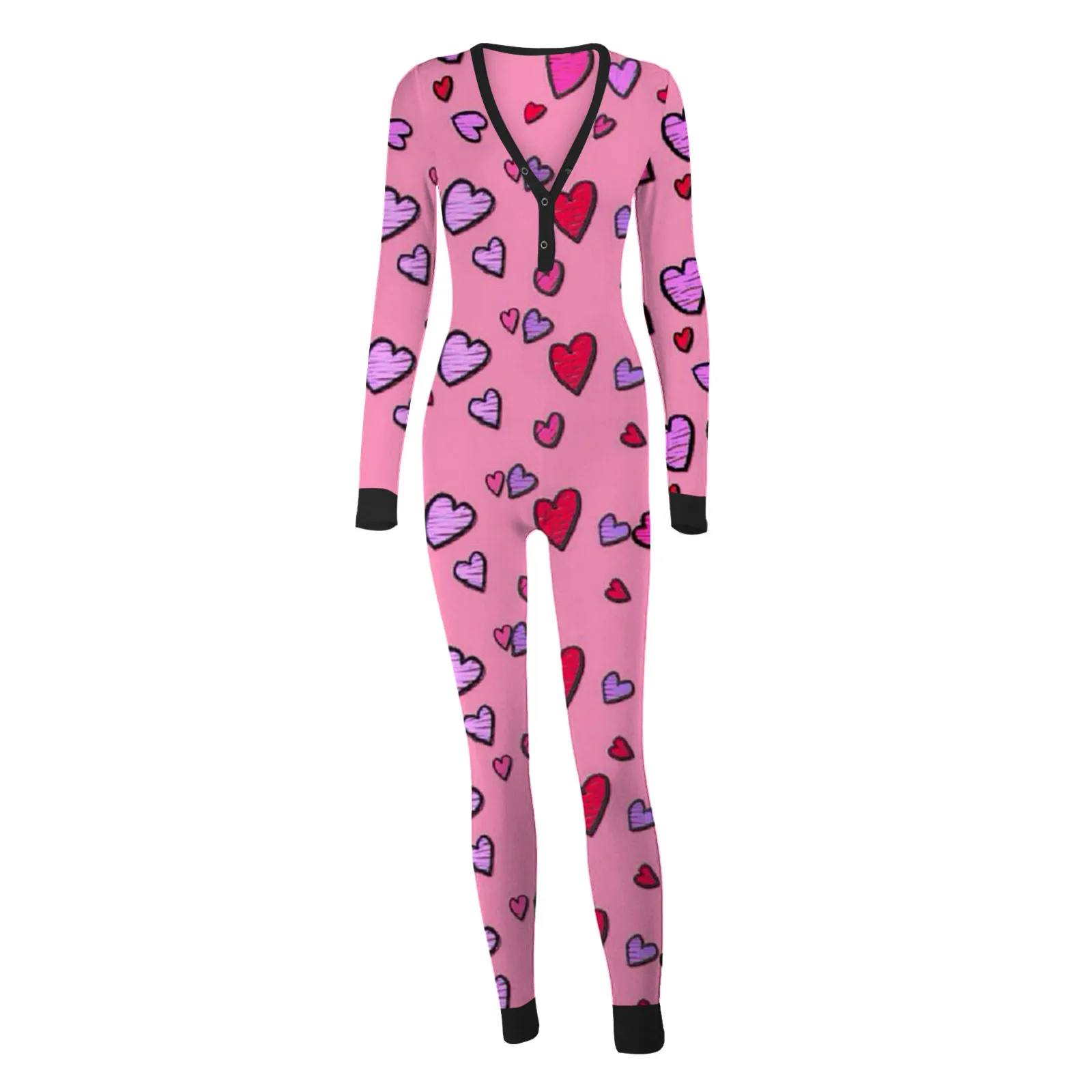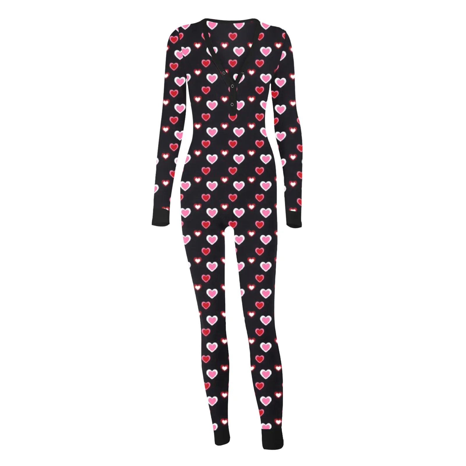 Ко Дню Святого Валентина Для женщин пижамы Комбинезоны длинный рукав; пуговицы с отворотом, одежда для сна, комбинезон, боди, костюм пляжного типа, комбинезон, пижама, нарядное платье familia мужские зимние парки inverno: