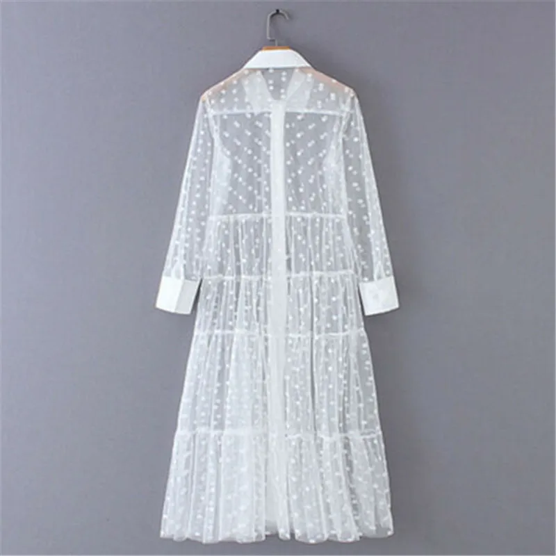 Musuos женское Сетчатое прозрачное длинное платье для купания пляжная стильная праздничная одежда в горошек с V-образным вырезом на пуговицах прозрачная Повседневная рубашка-блуза