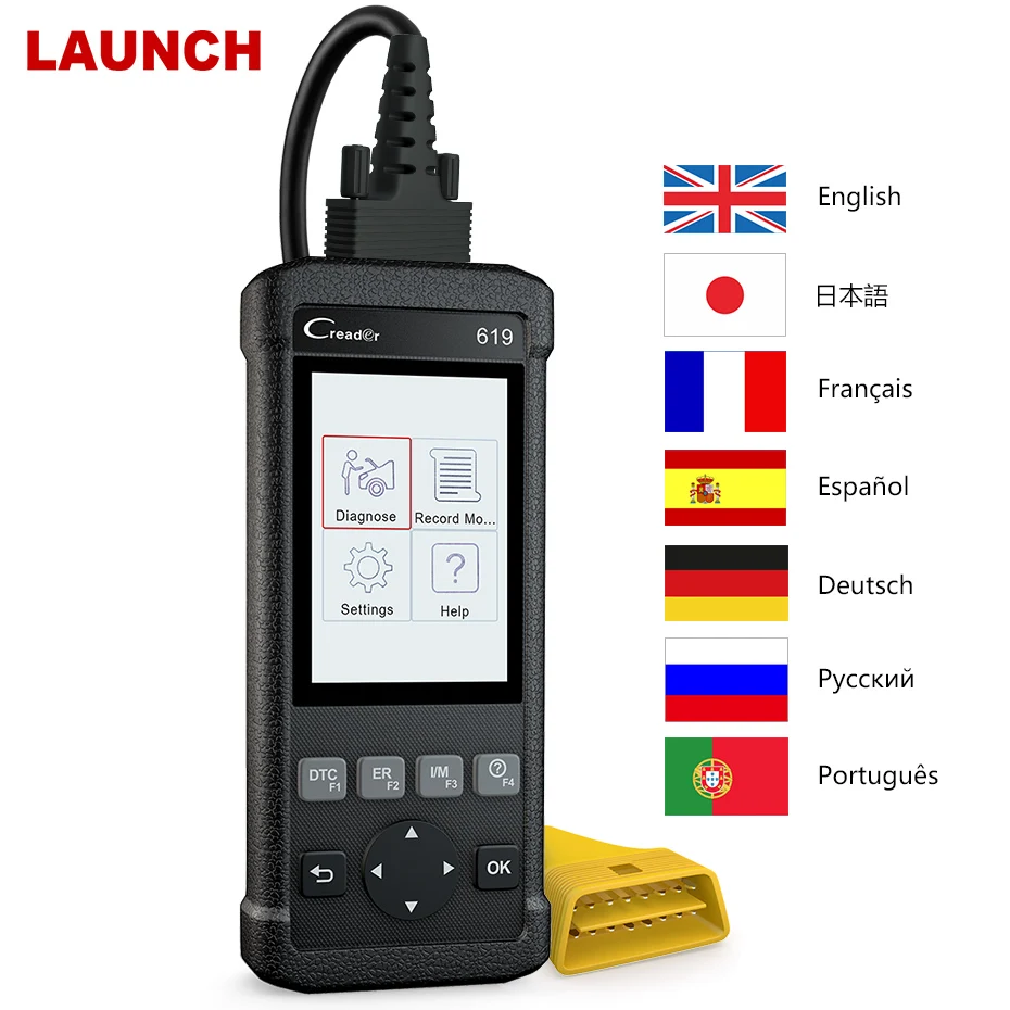 Диагностический сканер OBD2 LAUNCH CR619, автомобильный диагностический прибор, функции OBDII, подушка безопасности, считывание кода ошибки, ABS, бесплатное обновление