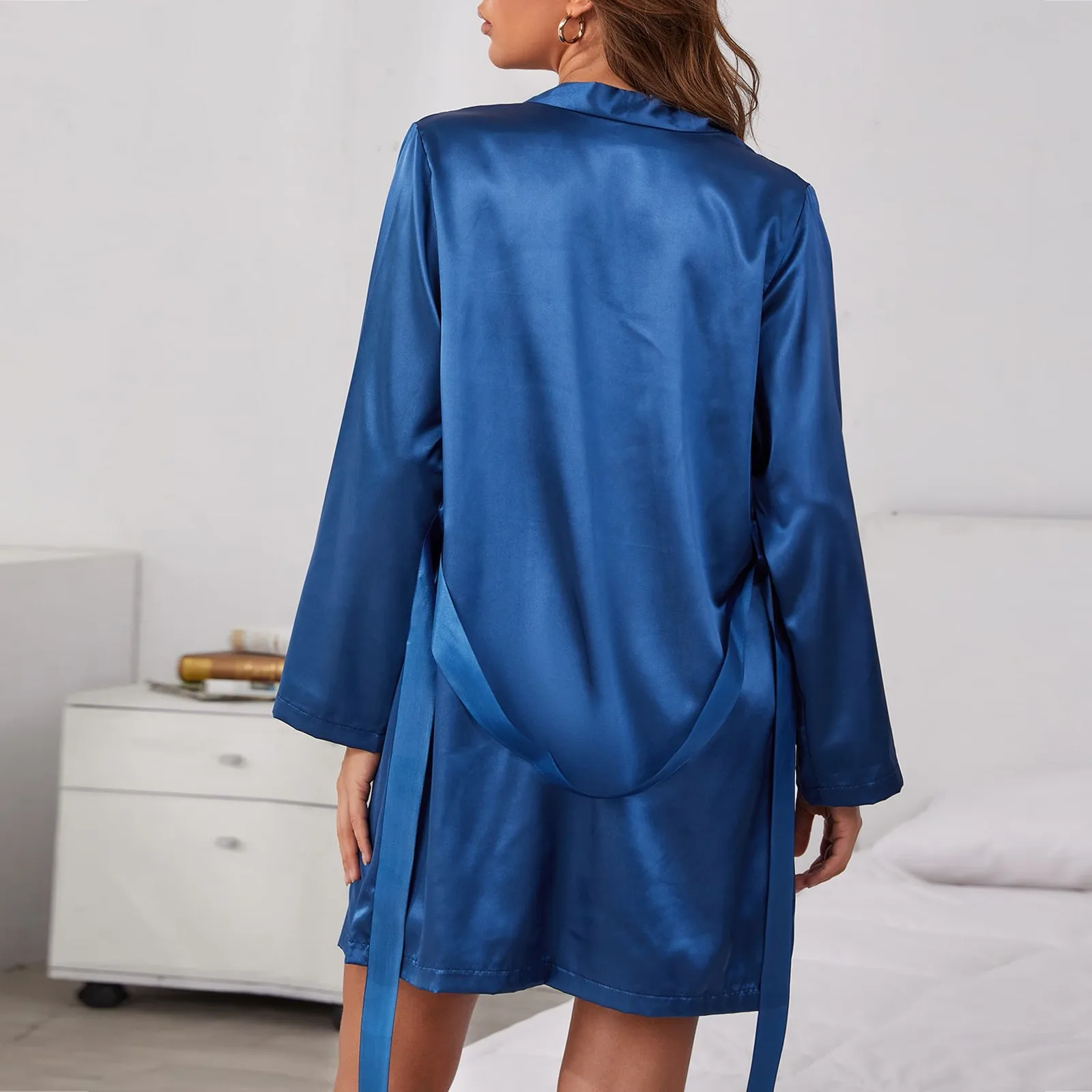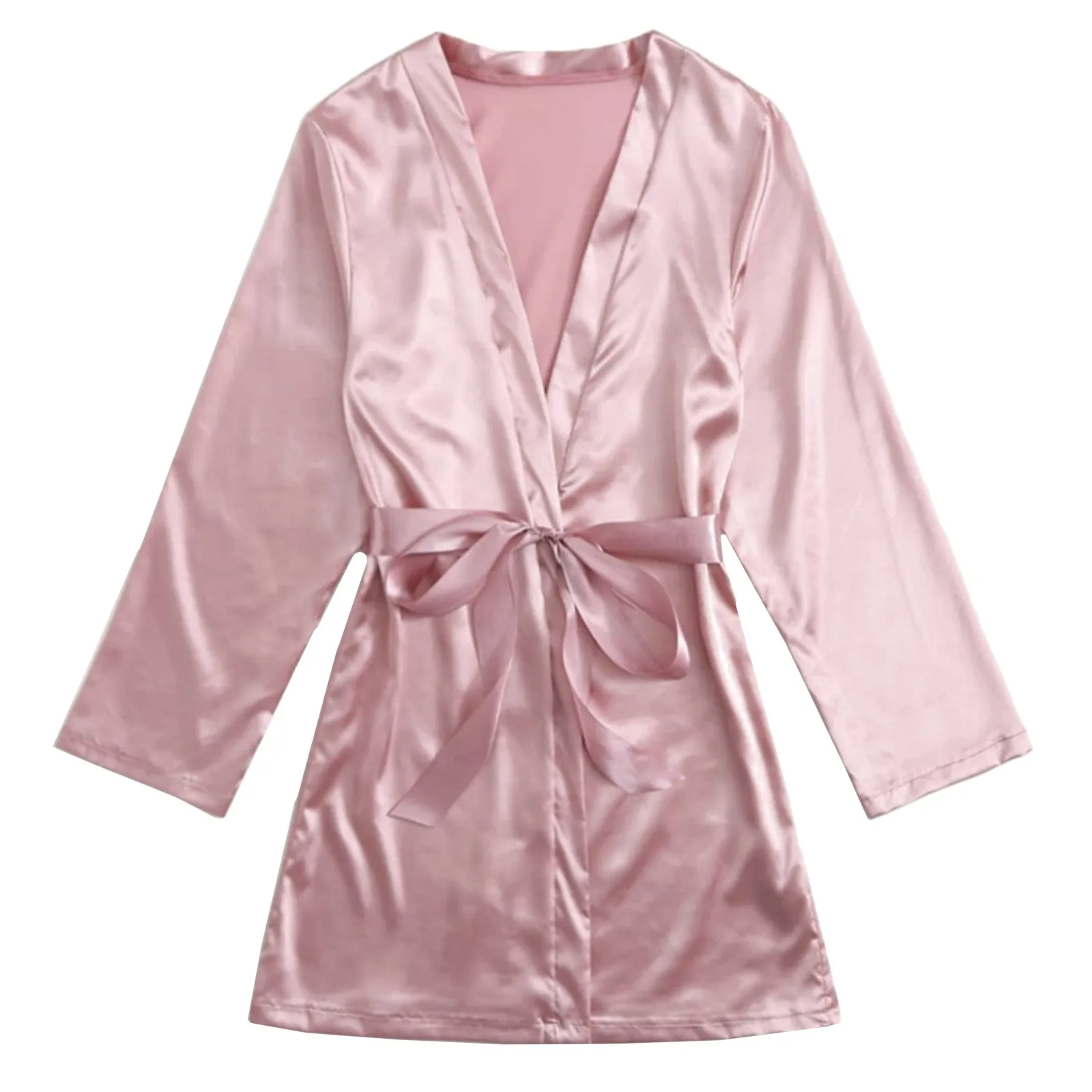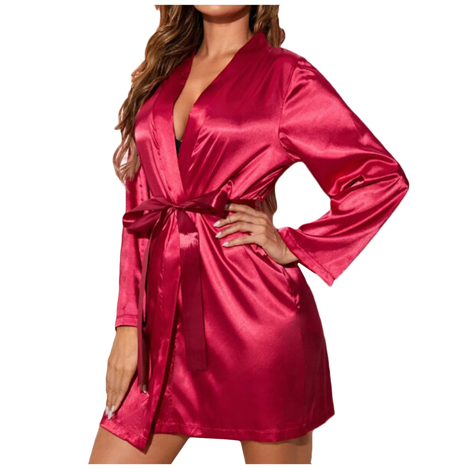 Женская Сексуальная атласная пижама с длинным рукавом, халат с поясом, Белье для сна