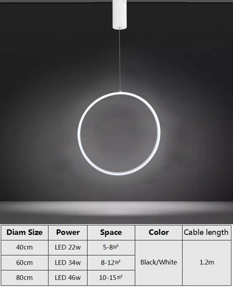 Диаметр 40 см 22 ВтДиаметр 60 см 34 ВтДиаметр 80 см 46 ВтМатериал: алюминий + силикон + сплавДлина кабеля: 1,2 м регулируемый