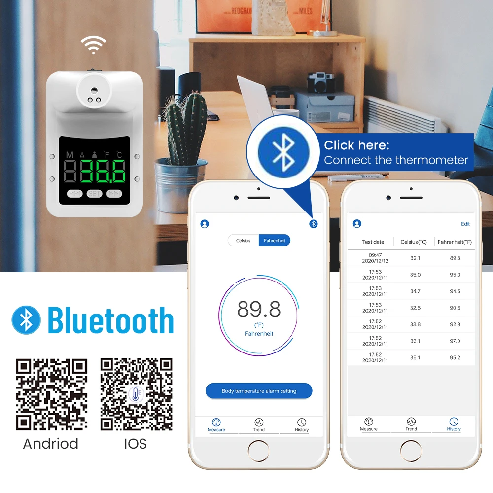 Бесконтактный термометр, совместимый с Bluetooth, настенный термометр, инфракрасный, цифровой, бесконтактное автоматическое измерение