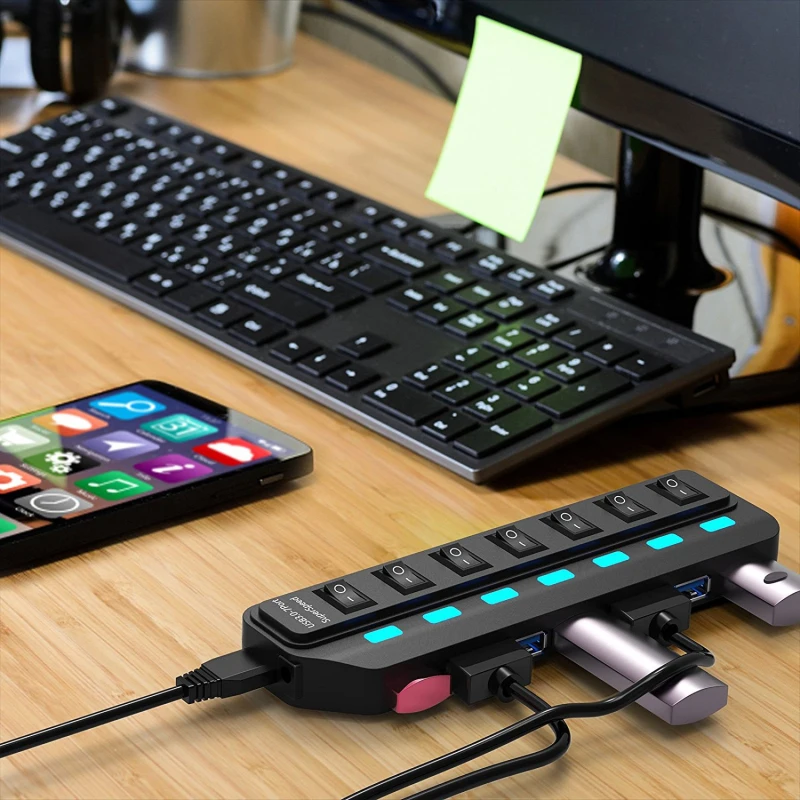 [Скорость передачи данных 5 Гбит/с] каждый порт оснащен технологией USB 3,0, которая может передавать данные со скоростью до 5 Гбит/с, этого достаточно для передачи фильмов высокой четкости за несколько секунд.