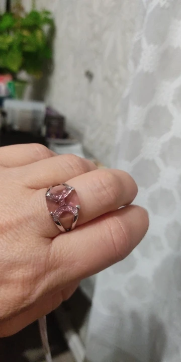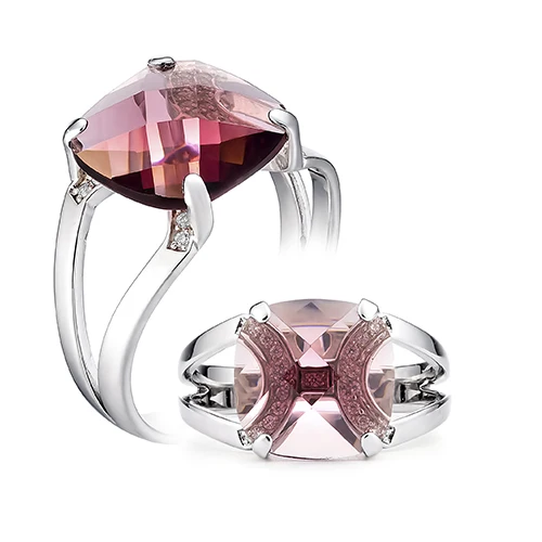 О товаре Кольцо из серебра с фианитовой обсыпкой. Вставка: родолит кристалл