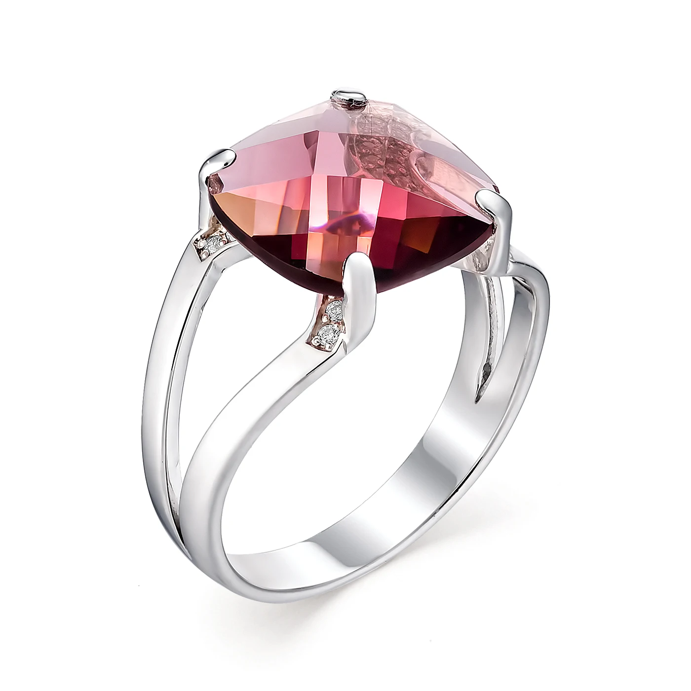 Кольцо тренд 2021 из родированного серебра c гранатом АЛЬКОР. Беспл...