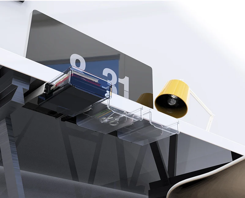 2. Он спрятан в нижней части стола, он не занимает место на рабочем столе. Он может держать различные Небольшие мелочи о офисе и жизни, такие как ручки, ластики, адаптеры и наушники и т. Д., отказался от запутанного рабочего стола и отпустить больше офисного пространства.