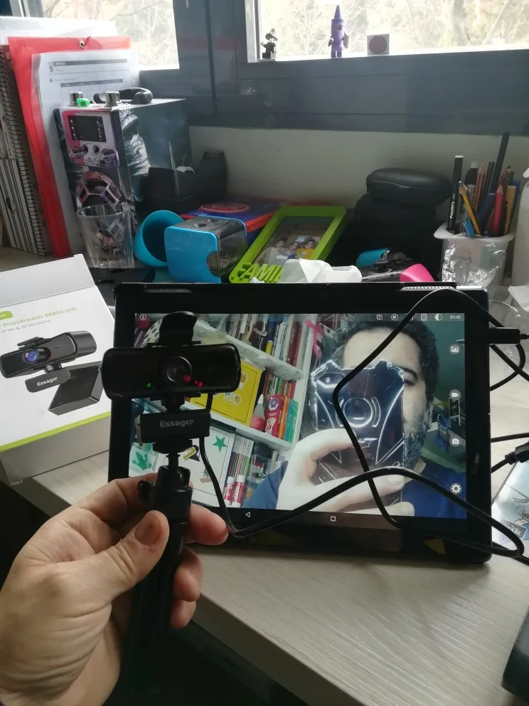 Веб-камера с очень хорошим соотношением цены и качества, она прибыла хорошо упакованной, с практичным адаптером для портов смартфона USB-C, штатив небольшого размера, хотя ноги могут быть развернуты, отличная деталь коврик с петлей для покрытия камеры. При тестировании камеры вы можете увидеть, что он имеет большой угол обзора, вам не нужно беспокоиться о том, если он плохо фокусируется на вас, он записывает всю комнату. Звук микрофона также превосходен, он значительно улучшает звук компьютера или любого другого устройства, где вы подключаете его. Мой опыт работы пользователя идеален, я использую веб-камеру для классов музыки, с большой угловой камерой мы можем быть двумя людьми в одной комнате, давая класс, не беспокоясь. Изображение идеально даже при слабом освещении. Даже мой маленький сын хочет создать канал Youtube после тестирования. Без сомнения, это была отличная покупка. Плюсы: -Great angle camera. -Адаптер USB-C. -Крышка бисагра. Минусы: -Нестабильный штатив.