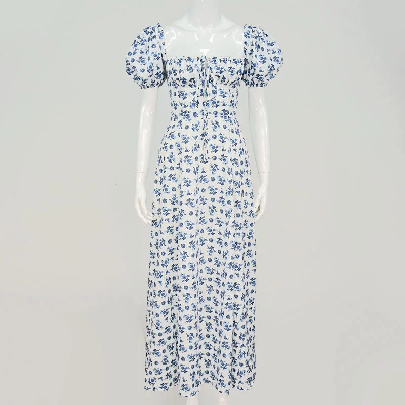 Женское платье макси SRUBY, с цветочным принтом, с квадратным вырезом, с пышными рукавами, с боковыми разрезами, на кулиске, для вечеринок, повседневная одежда