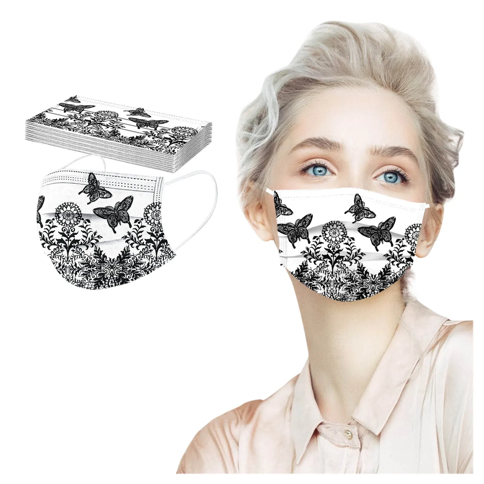 10 шт., одноразовые маски для лица для взрослых, с принтом бабочек