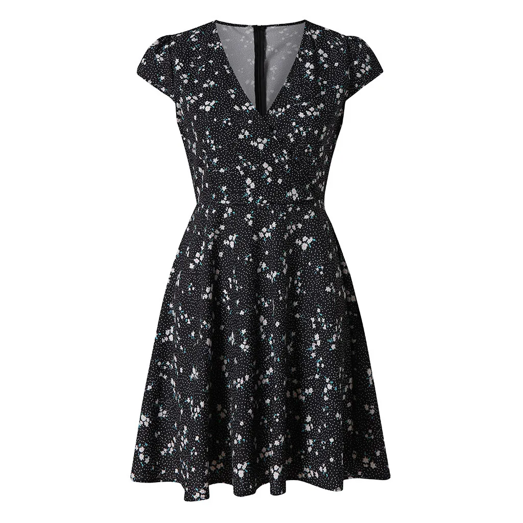 Женское платье размера плюс футболки с короткими рукавами и v-образной горловиной Цветочный принт мини платье повседневное пляжный отдых вечерние платье Vestido De Mujer; Большие размеры; Сезон лето