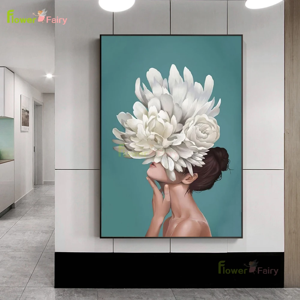 Абстрактная девушка волосы цветок птица стена искусство холст живоп...