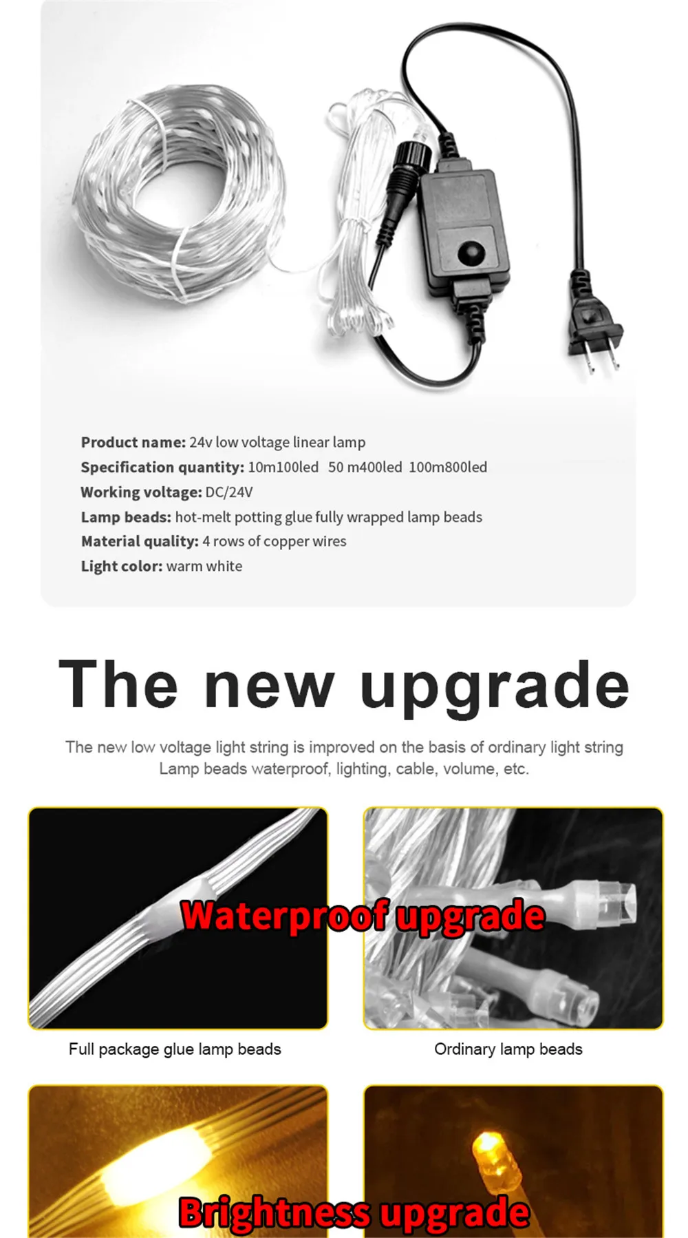 Новая супер яркая светодиодная гирлянда 10 м/50 м/100 м, 24 В, водонепроницаемая серебряная проволока, Сказочная гирлянда, Рождественская Свадебная вечеринка, декор свет
