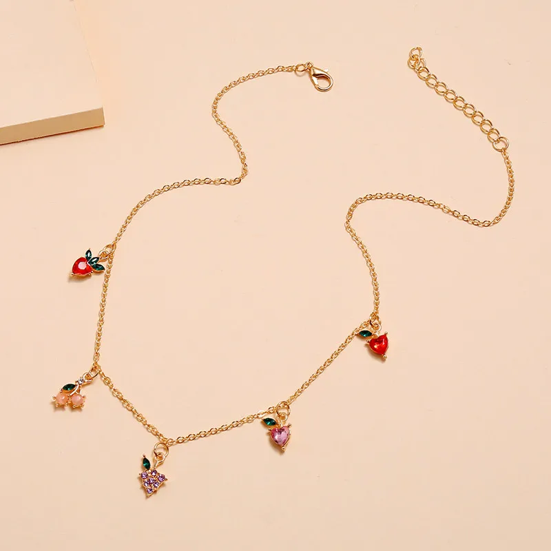 Цепочка до ключиц с кристаллами яблоко, вишня, виноград, ожерелье фрукты, милая золотая, вечернее вечерние жерелье, ювелирные подарки, 1 шт.