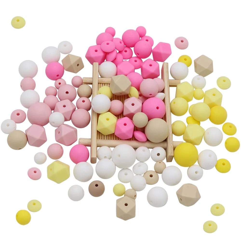 BOBO. Коробка 30 шт. Силиконовые Бусины 9/12/15 мм круглый чечевицы шестиугольник силиконовый Прорезыватель для зубов Бусины Пищевой Ребенка При Прорезывании Зубов, соски с цепочкой для младенцев, "сделай сам"