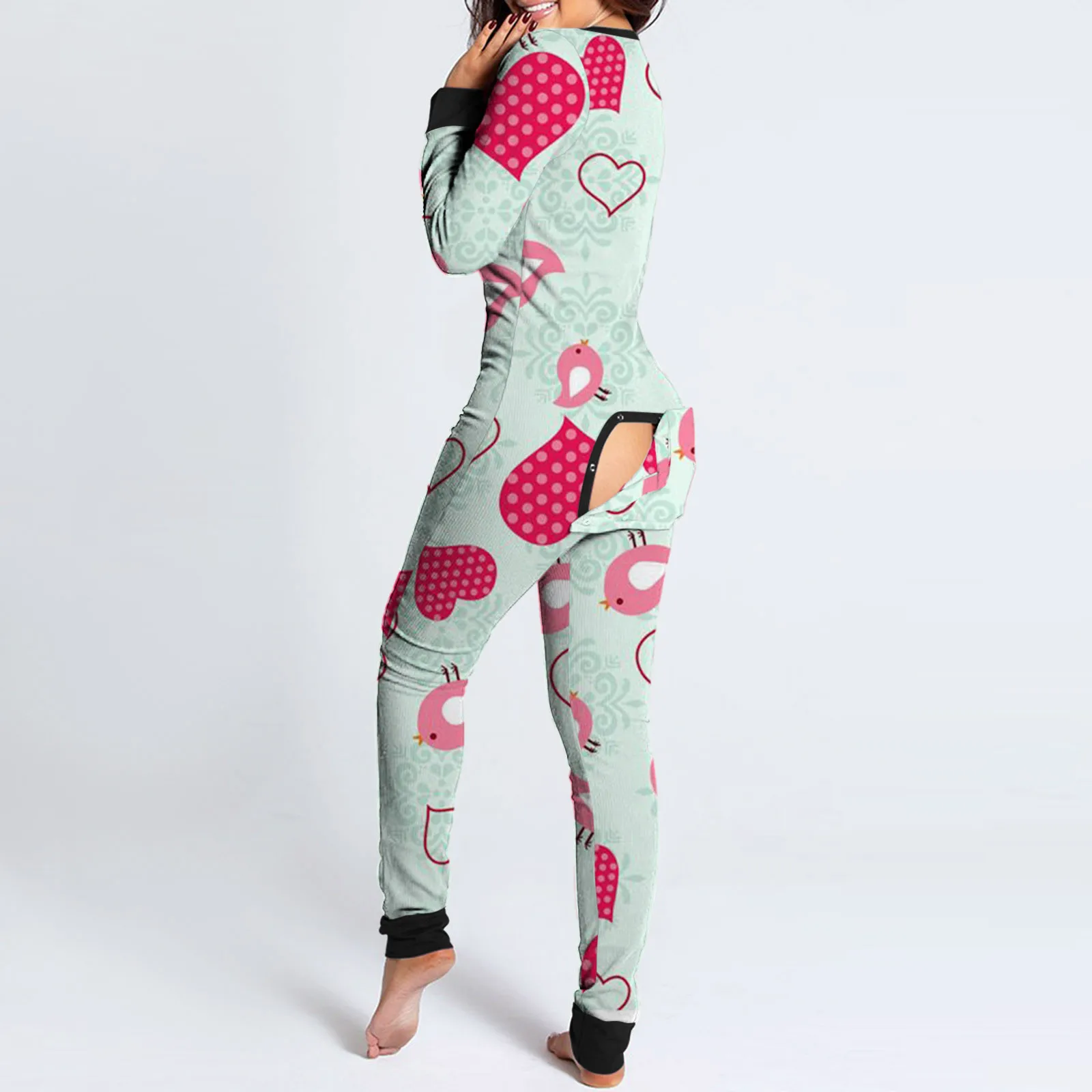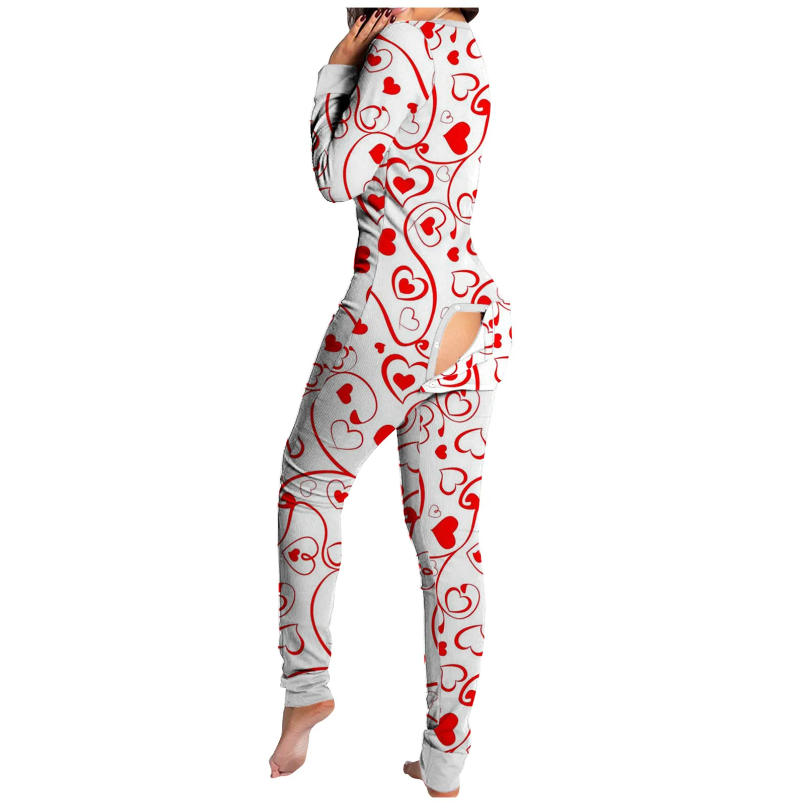 С принтом в виде сердечек; Женская Onsies комбинезоны Кнопка Тонкий Купальник одежда для сна домашний костюм нижнее белье-комбинезон сексуальный с длинными рукавами; Ночное белье; Mujer