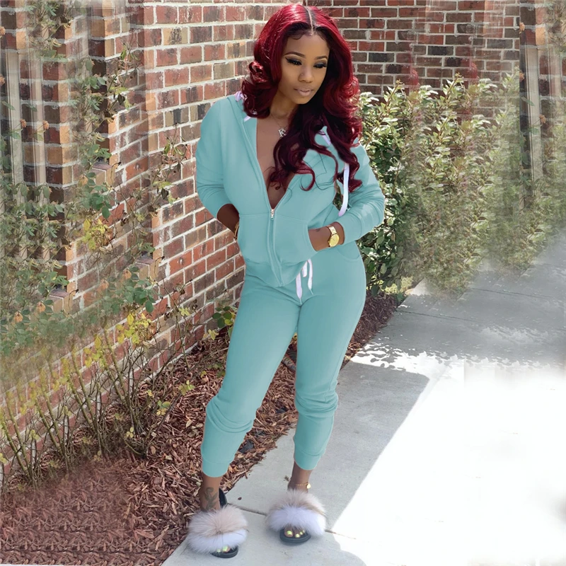 Спортивный костюм с капюшоном для женщин, комплект из двух предметов, толстовка на молнии, кофта и штаны, спортивные тренировочные костюмы, повседневная одежда, весна-осень