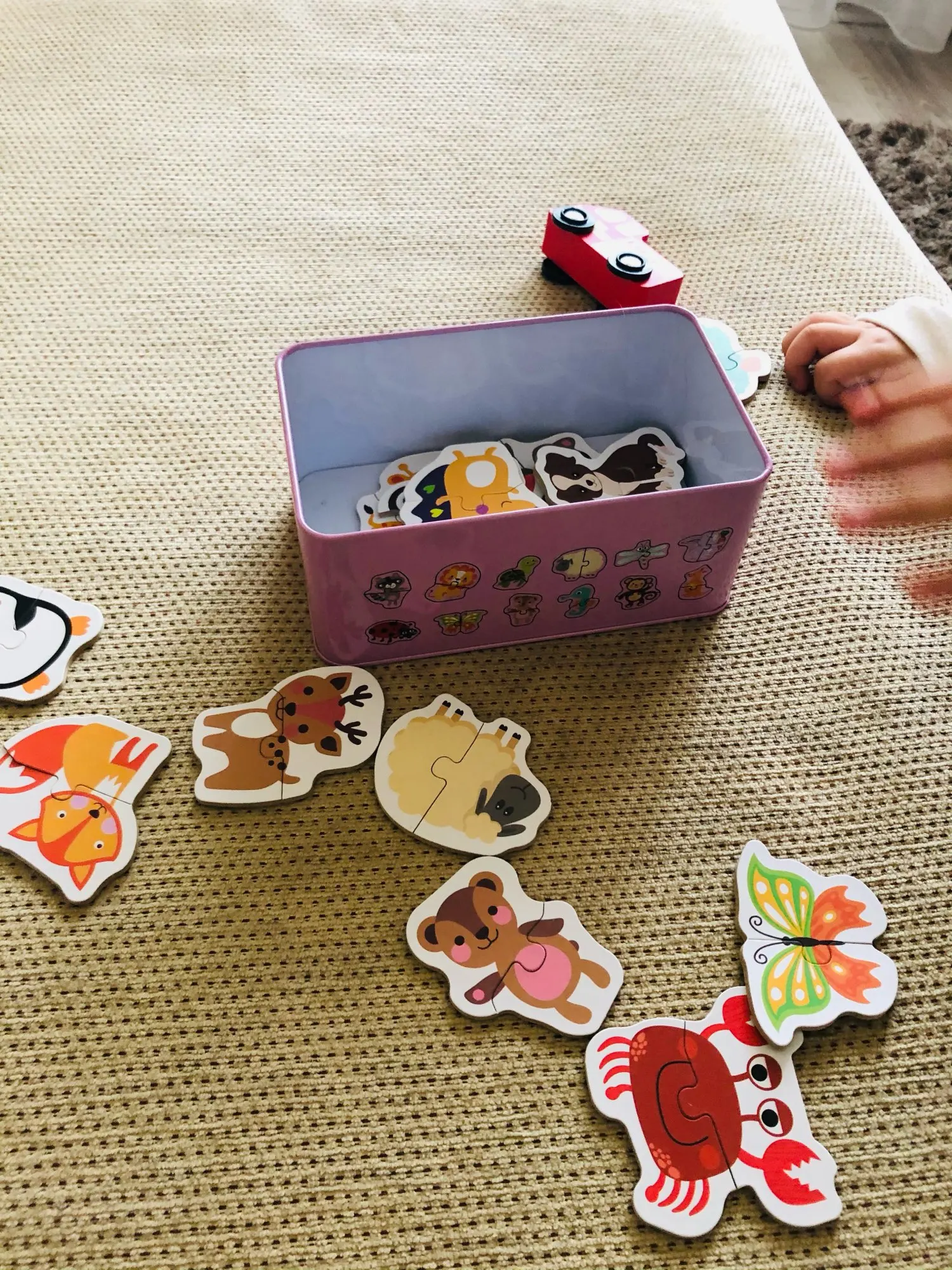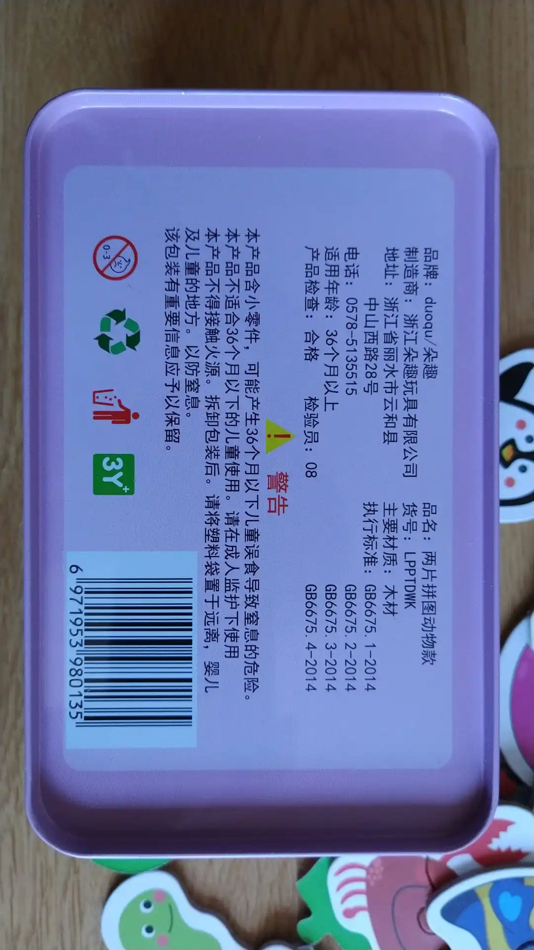 Воняет 12 животных в 24 штуки. С одной стороны рисунок животного и с другой имя на английском и китайском языках. Каждый животное измеряет, как только кусочки соединены, около 6x6 см. Кусочки хранятся в коробке с банками, которая, как и единственный недостаток, инструкции? Они написаны только на китайском языке. В любом случае в верхней крышке указано, что игрушка подходит для детей старше 3 лет (кусочки маленькие, примерно 3x2 см. Каждый, и они сделаны из твердого картона). На самом деле я думал, что это будет большая куча кусочков, но это не проблема, я оставлю ее, когда мой ребенок будет немного старше. Рисунки очень красивые и красочные, с хорошей отделкой, а кусочки идеально подходят. Посылка прибыла в идеальном состоянии и довольно быстро (11 дней).