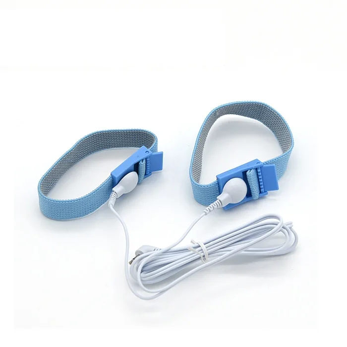 Бесплатная доставка, проводящие регулируемые элементы ремешка Estim для запястья, 4 шт. синих петель-кольца Stim + 1 шт. DC2.5 4 головки, зажимные провода