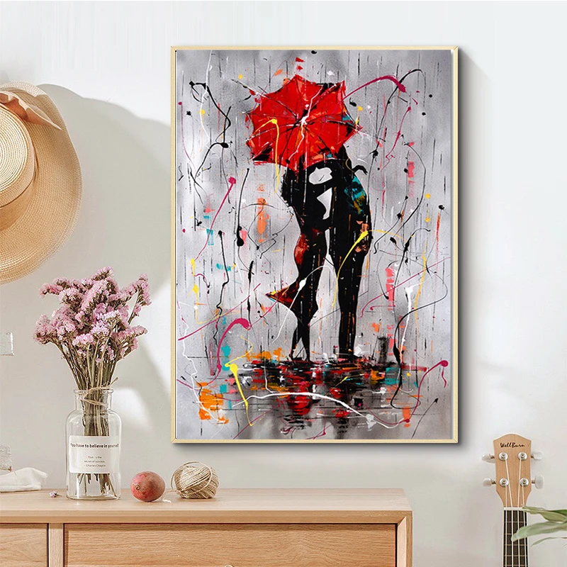 Абстрактная красная картина с изображением зонтика для влюбленных маслом на холсте скандинавские плакаты и принты Настенная картина для гостиной