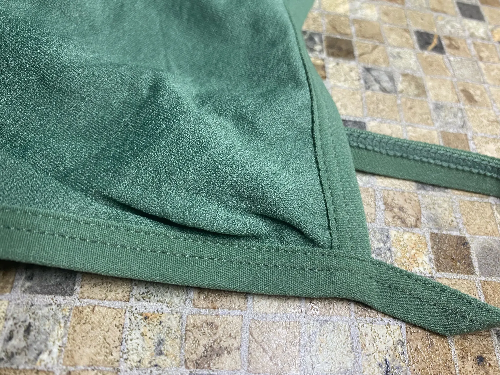 Несколько криво пришита ластовица. На ОБ 96 трусы хорошо, на верх 75с хотелось бы все-таки S, верх выглядит большеватым, то это такой фасон.