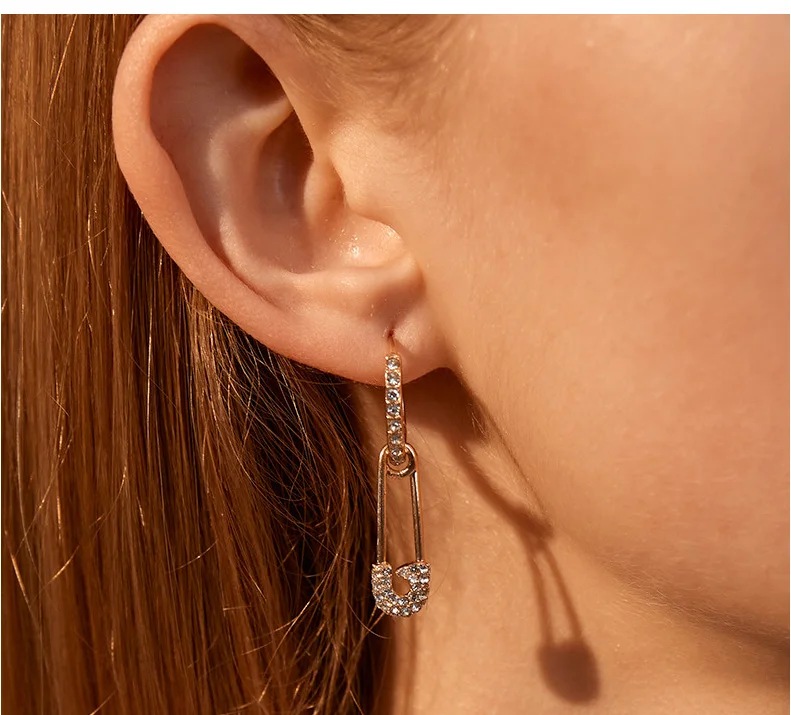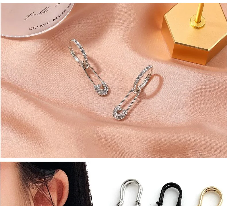 Новые серьги-кольца в стиле панк, горячая Распродажа, безопасная булавка Hyperbole, зажим с кулоном Стразы, унисекс бижутерия для вечерние, Brincos