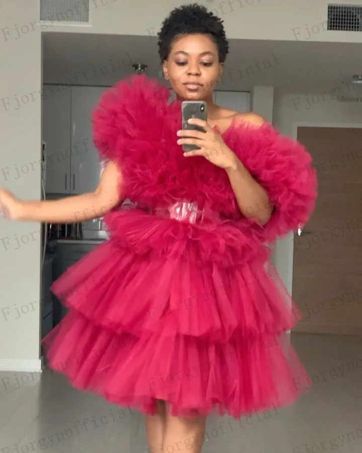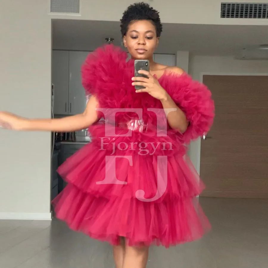 Розовое Пышное Тюлевое платье с оборками Сексуальные Платья для бер...