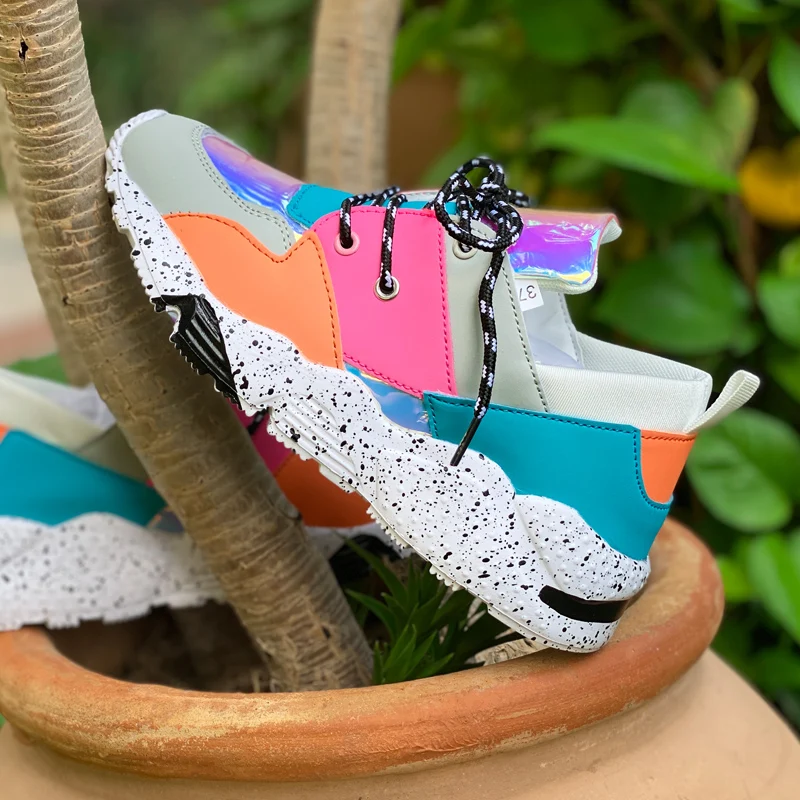 Женские кроссовки на платформе, разноцветные кроссовки на шнуровке,...