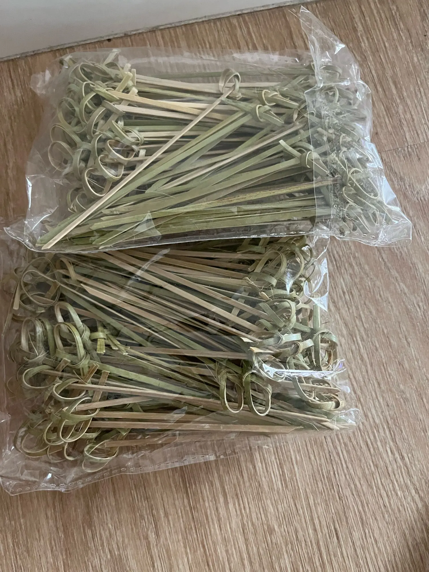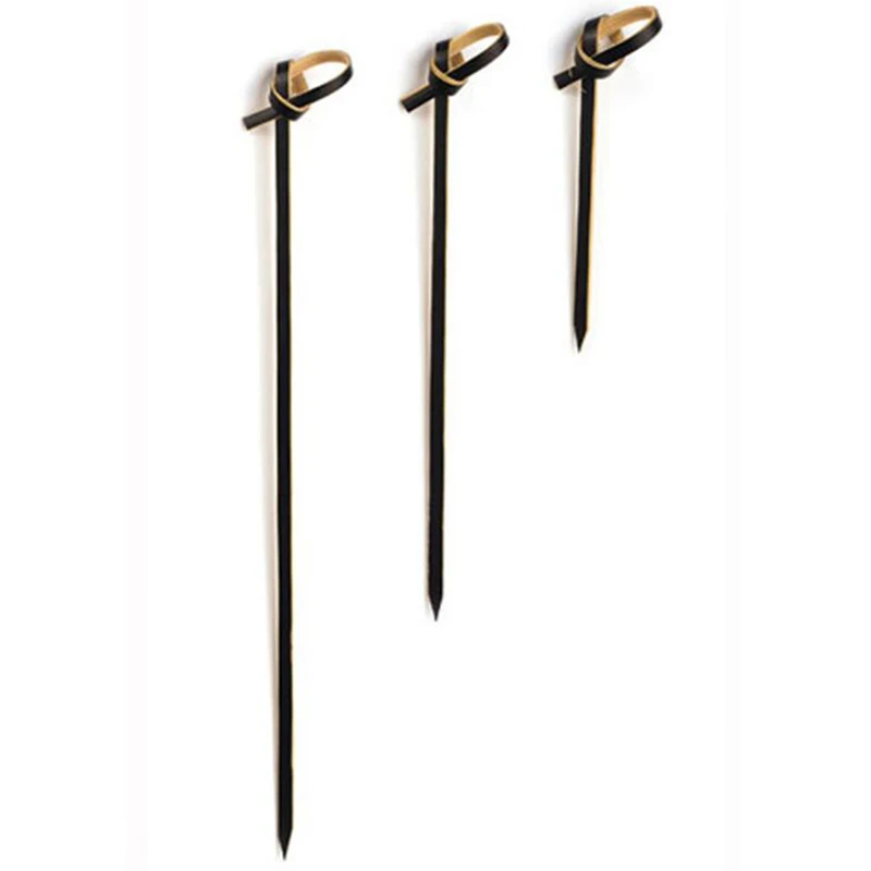 Бесплатная доставка-200упаковка, одноразовая посуда для вечерние ринки, свадьбы, 150 мм Коктейльные черные бамбуковые шпажки с узлом, фруктовые шпажки