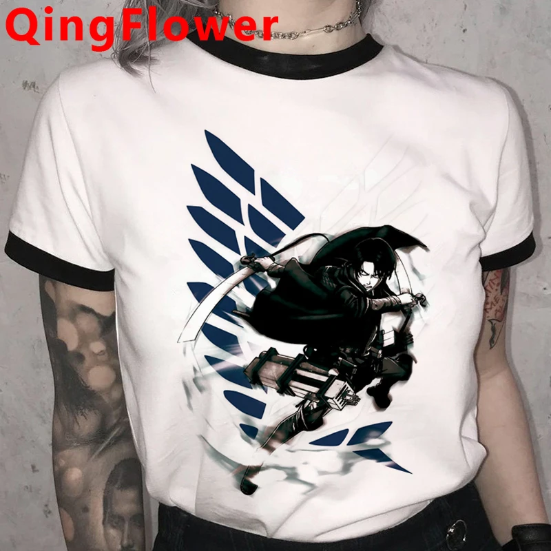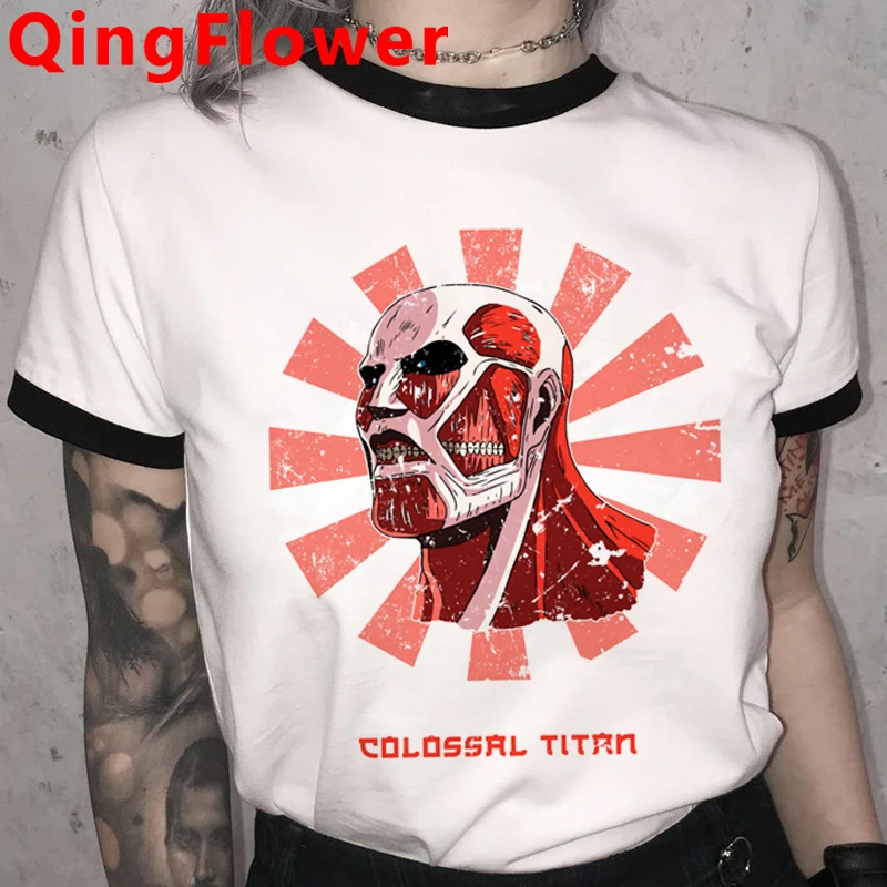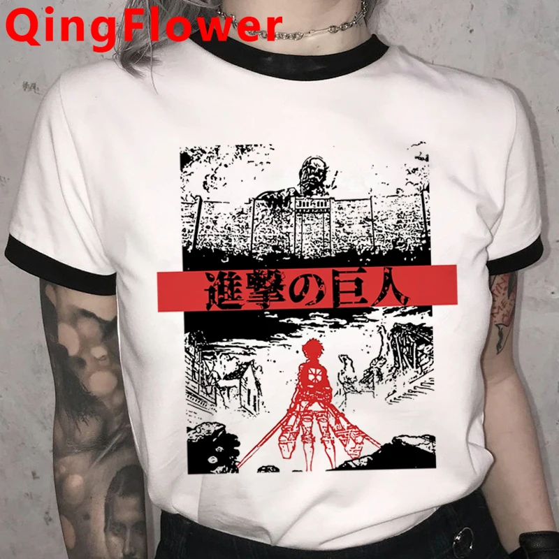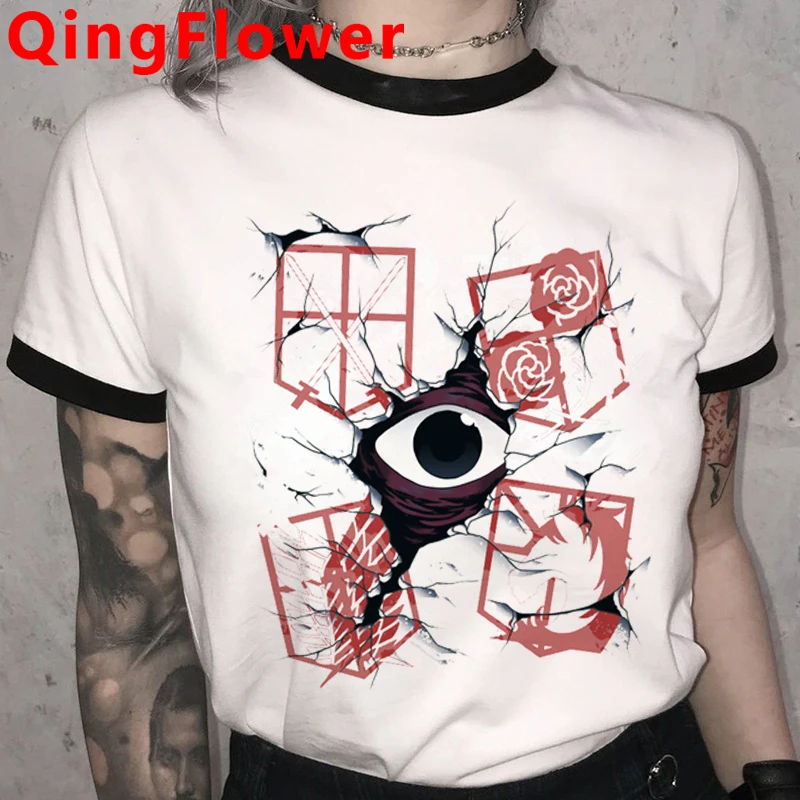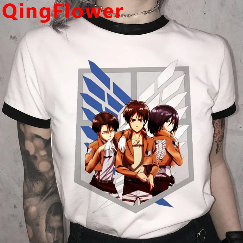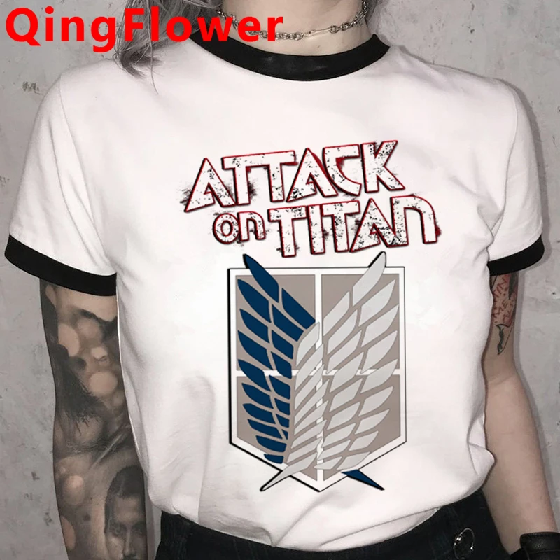 Атака Титанов Женская Повседневная размера плюс пара белая футболка...