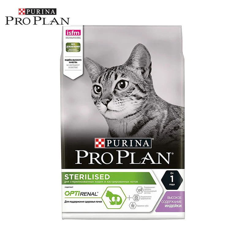 После стерилизации пищевые потребности кошки меняются. Изменения в гормонах могут привести к снижению физической активности и перееданию. Впоследствии кошка может набирать лишний вес, что увеличивает риск инфекций нижних мочевыводящих путей. Линейка кормов Pro Plan Sterilized предлагает сбалансированное питание, полностью отвечающее потребностям стерилизованных кошек. Каждый рацион в ассортименте способствует укреплению здоровья мочевыделительной системы и поддержанию оптимального веса тела. Корм содержит формулу OPTIRENAL — специальное сочетание питательных веществ, включая антиоксиданты, аргинин и омега-3 жирные кислоты, которые поддерживают здоровье почек.