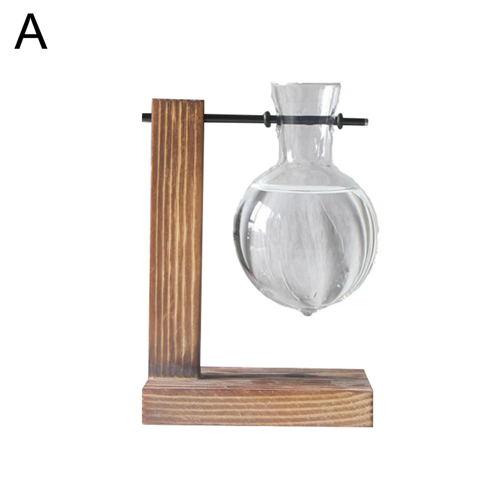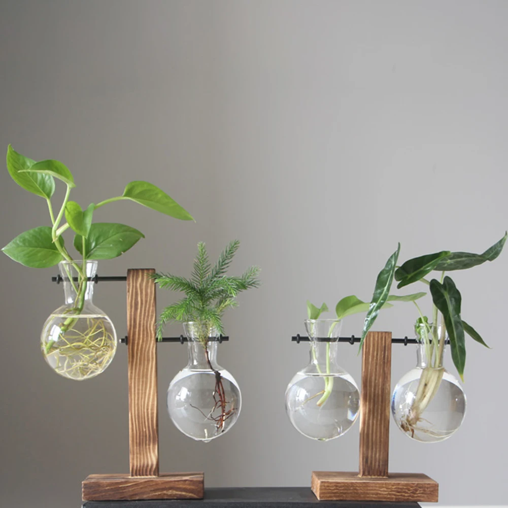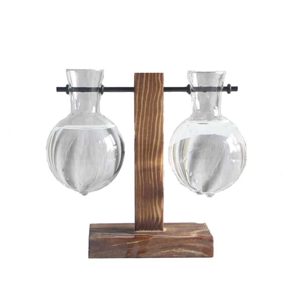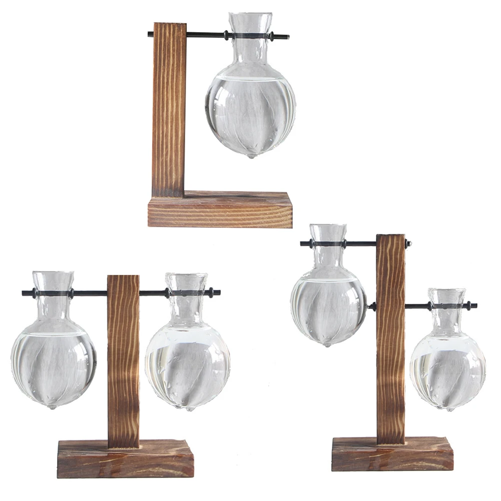 Стеклянная и деревянная ваза в скандинавском стиле, настольная гидр...