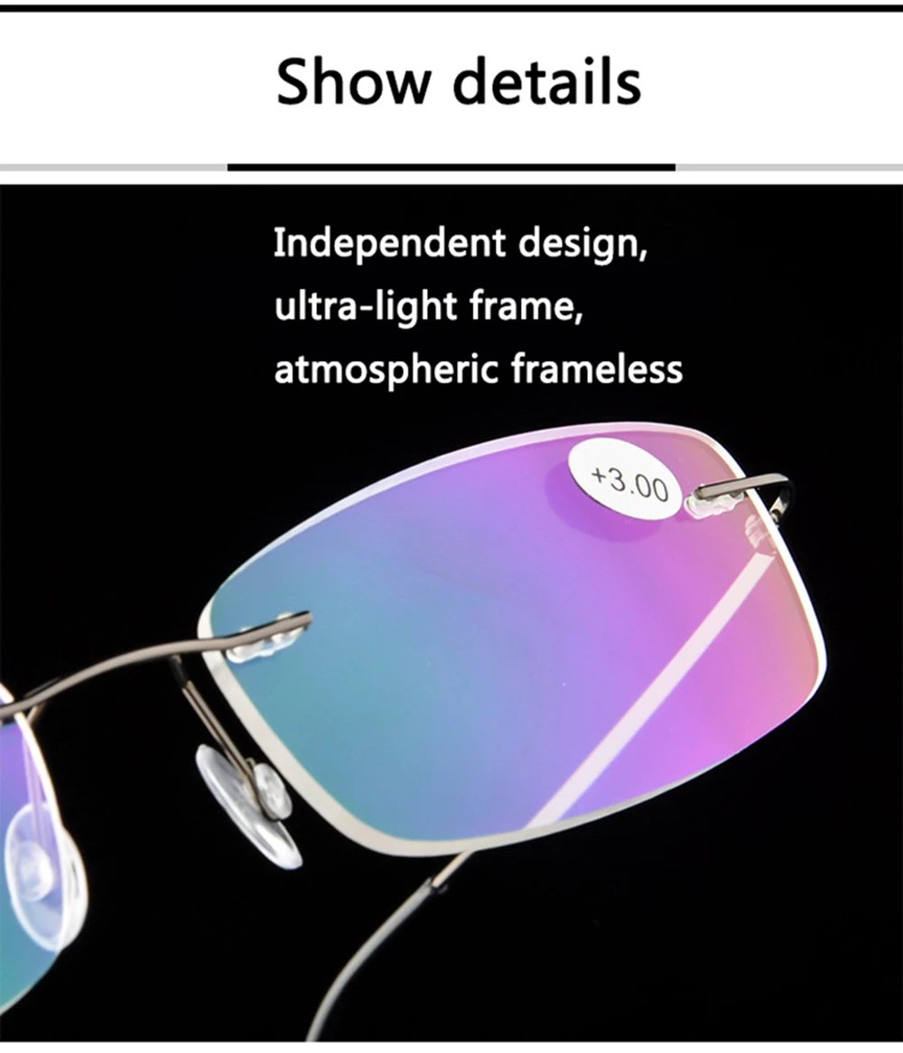 Ультралегкие очки для чтения без оправы из титана с эффектом памяти