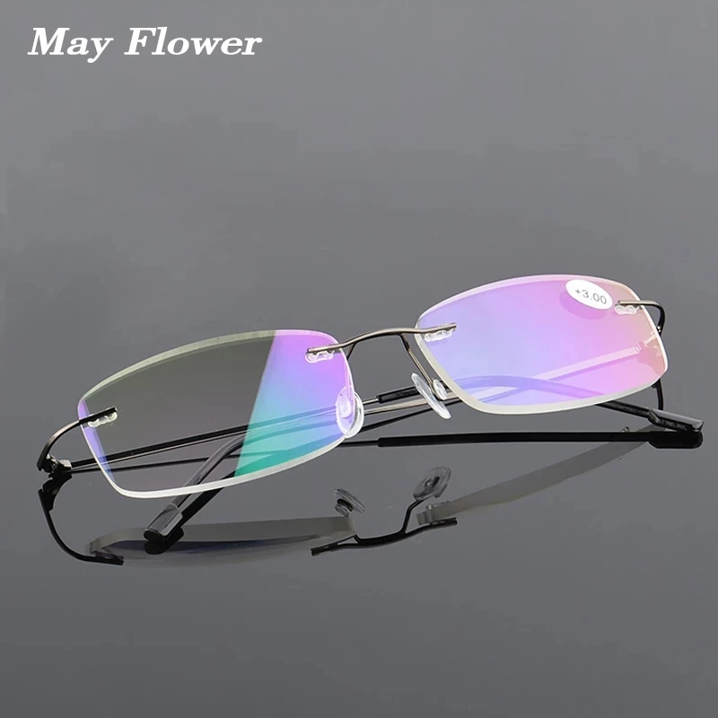 Очки для чтения без оправы мужские, модные аксессуары для чтения без оправы, с блокировкой синего света, без оправы, для дальнозоркости, + 2
