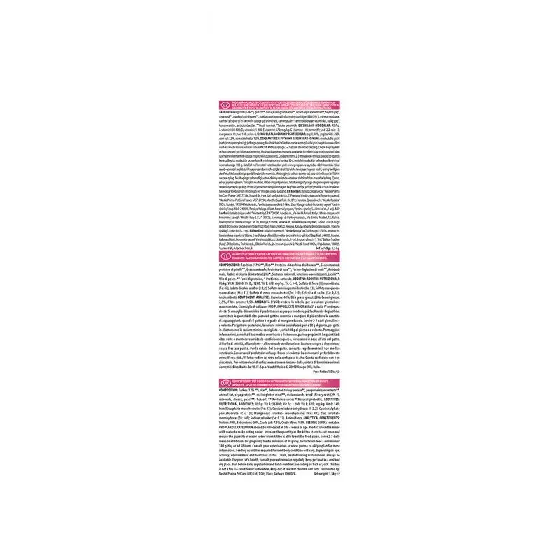 Индейка 17%, кукурузный глютен, рис 17%, концентрат горохового белка, сухой белок индейки, животный жир, кукурузный крахмал, сухой корень цикория 2%, кукуруза, минеральные вещества, вкусоароматическая кормовая добавка, дрожжи, рыбий жир, витамины, антиоксиданты
