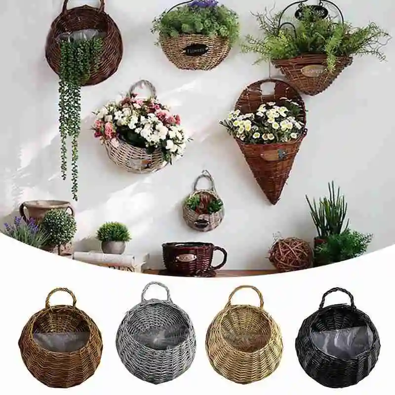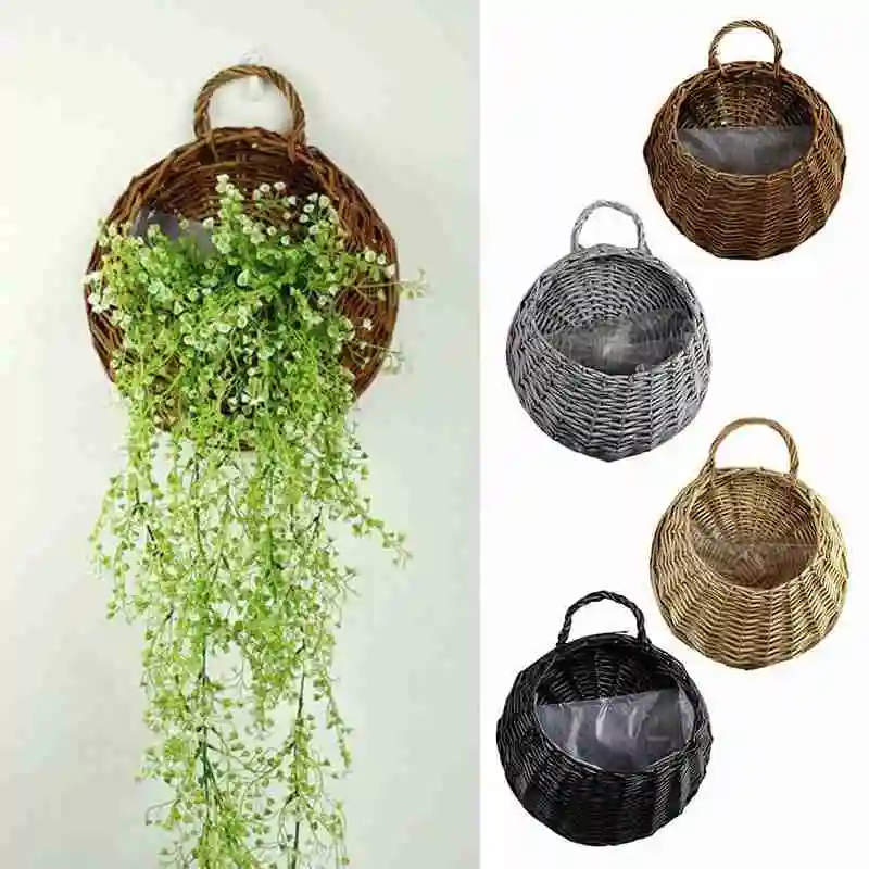 Настенная Корзина для цветов, плетеная корзина из ротанга