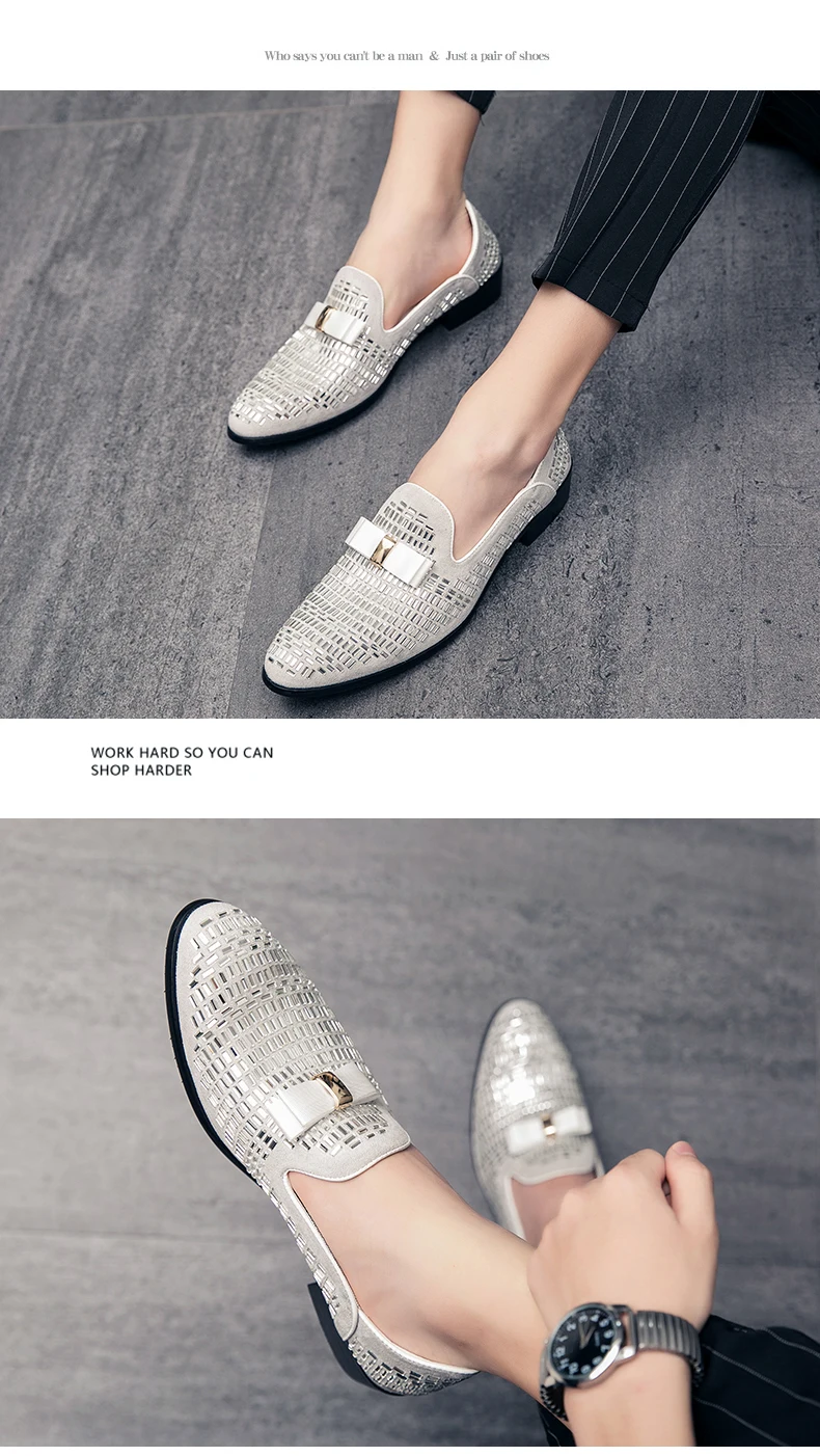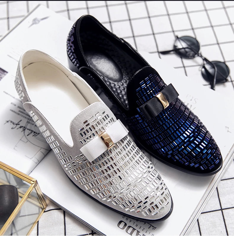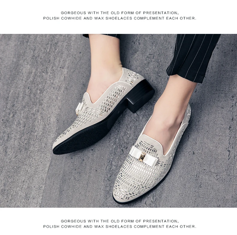 Белая Мужская Свадебная обувь с кристаллами; Модные туфли на выход; Роскошные фирменные мужские лоферы со стразами вечерние туфли в деловом стиле; Размеры 38-48, мужские лоферы слипоны, обувь без шнуровки