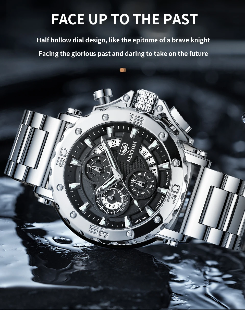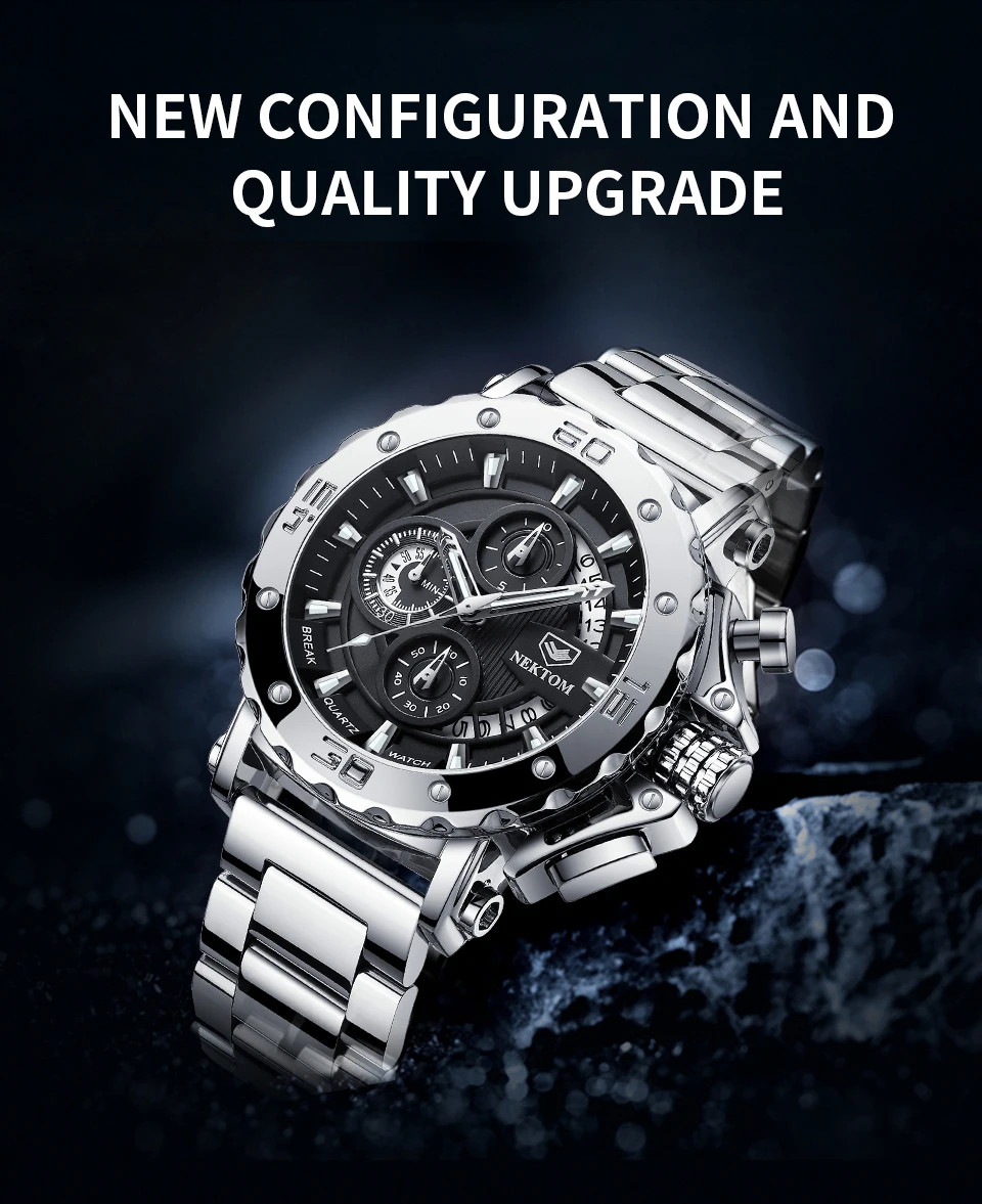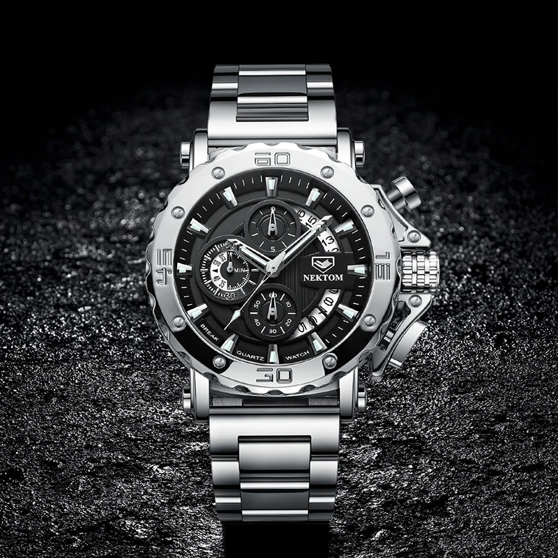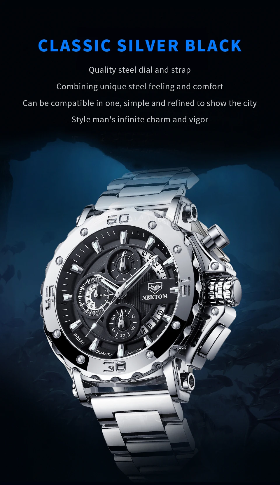 Часы мужские кварцевые NEKTOM, водонепроницаемые, на стальном ремешке