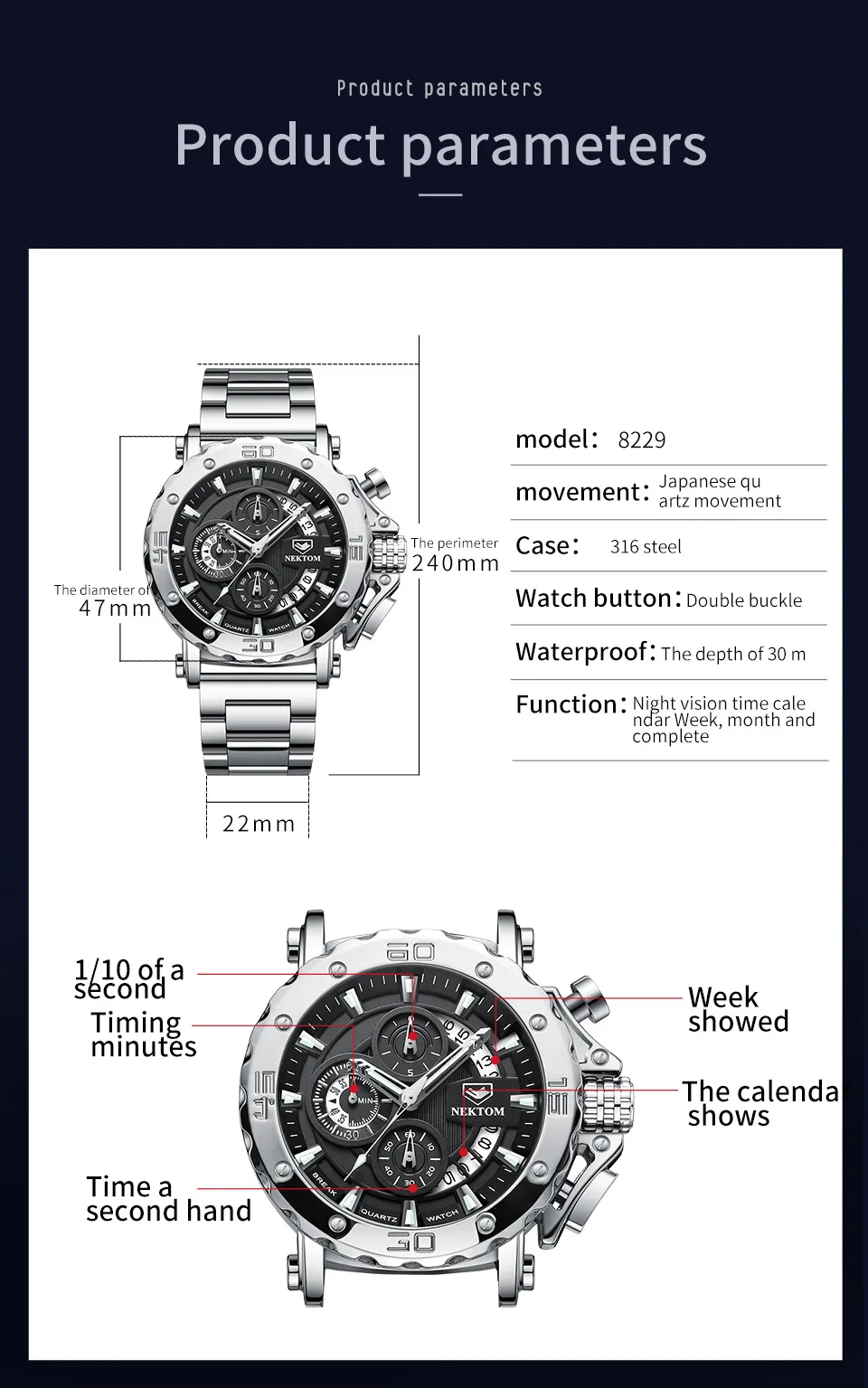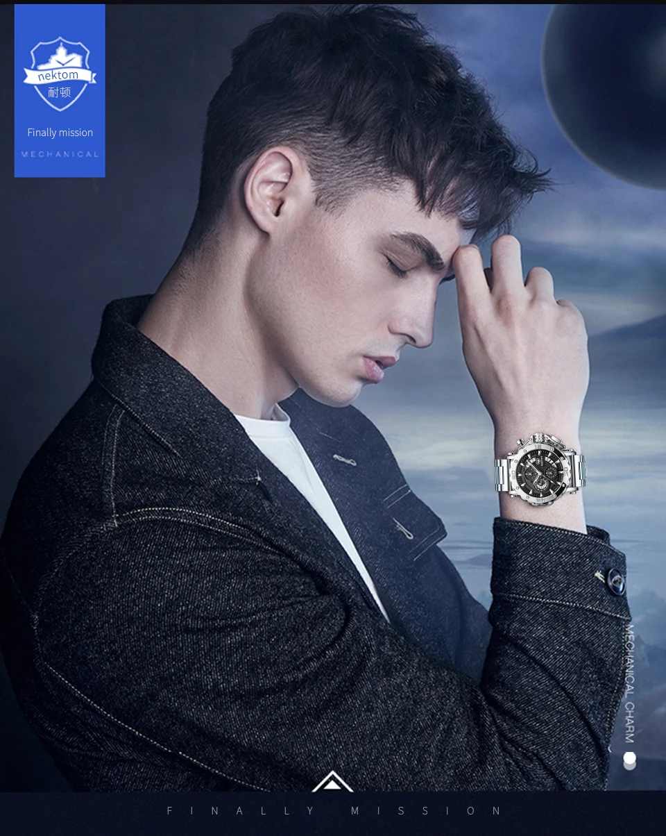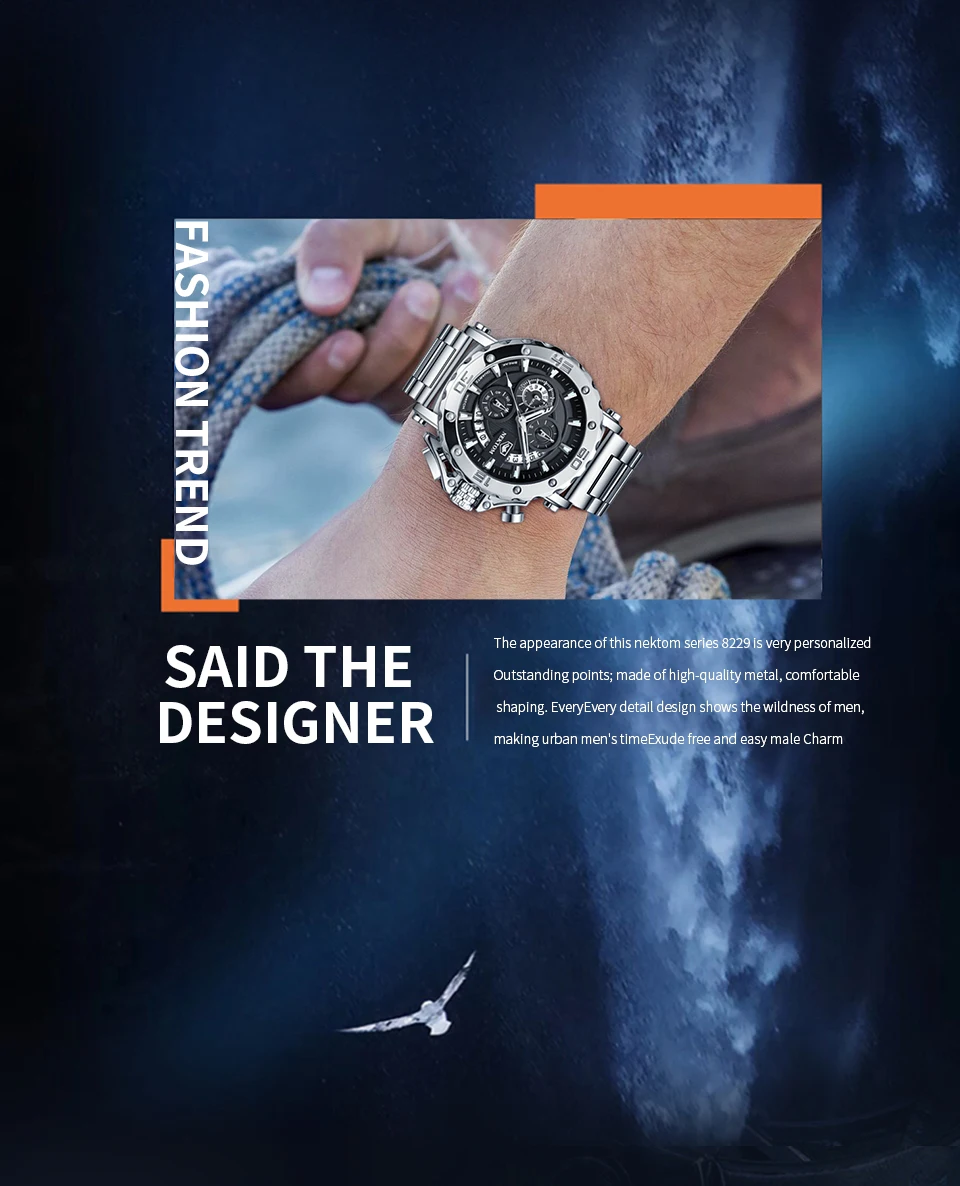 Часы мужские кварцевые NEKTOM, водонепроницаемые, на стальном ремешке