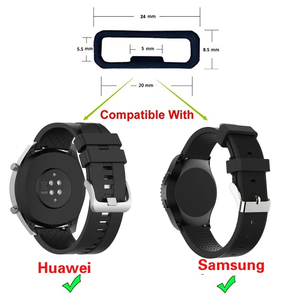 Мягкие силиконовые кольца 20 22 мм для Huawei Watch GT/Huami/Samsung, сменный ремешок, фиксирующий кольцо-петля, черный фиксатор, держатель с пряжкой