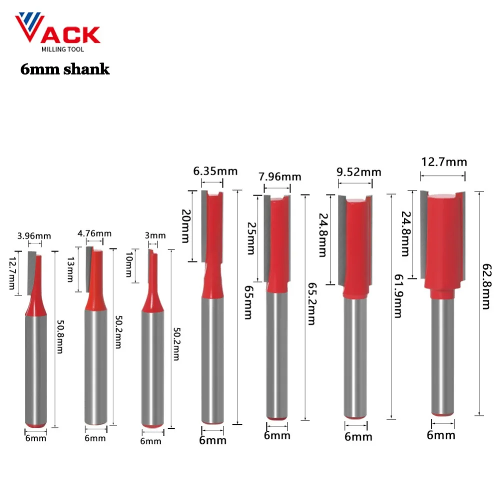 Фреза VACK 6 мм 1/4 дюйма с длинным хвостовиком, фреза для очистки дна отделки дерева дюйма, фреза для деревообработки с ЧПУ, чистые сверла, прямые фрезерные инструменты