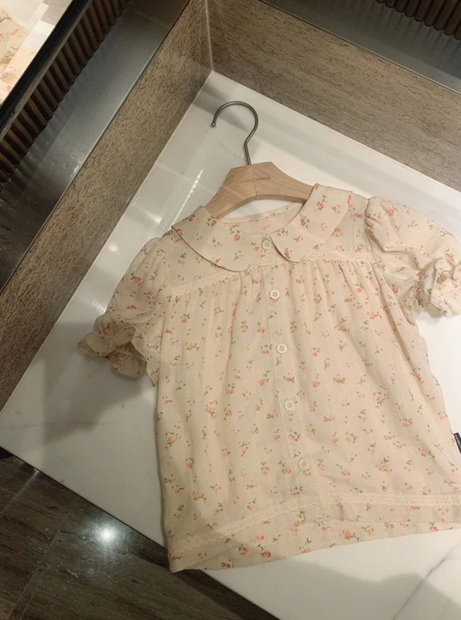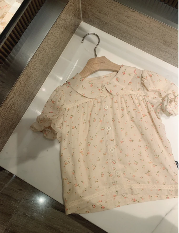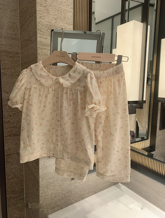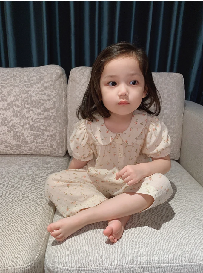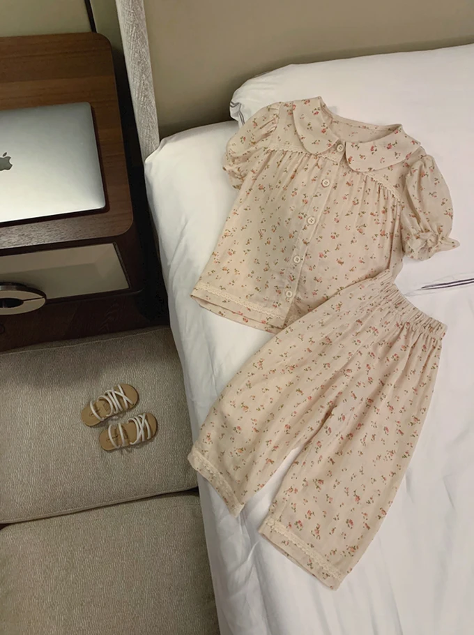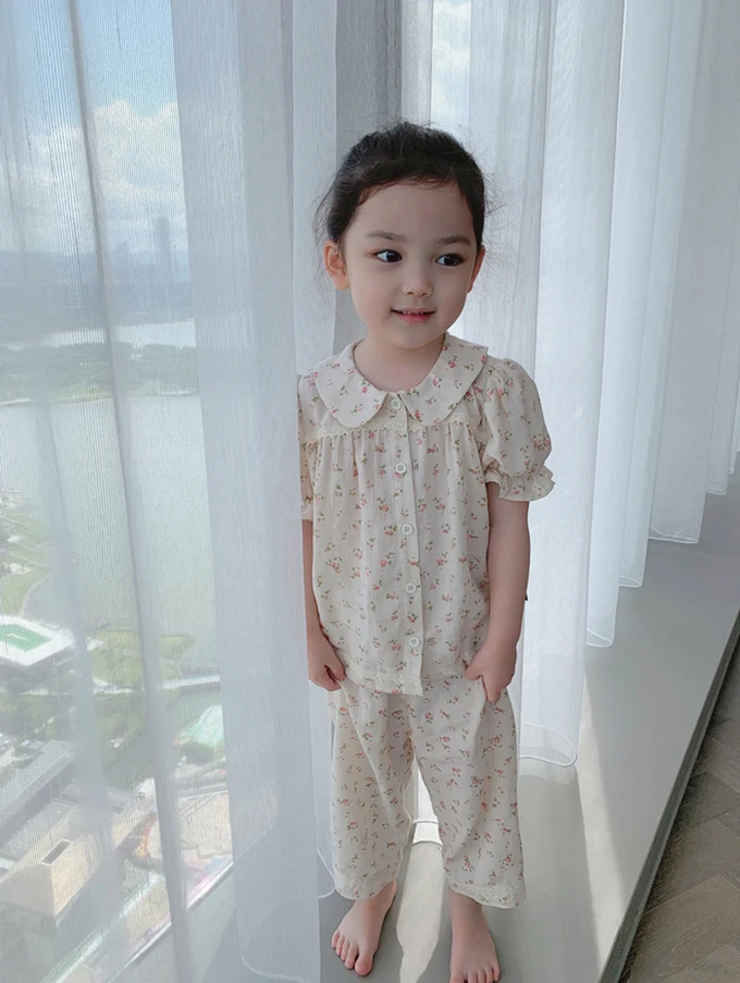 Детские пижамные комплекты с отложным воротником для девочек, винтажный пижамный комплект с цветочным рисунком и пышными рукавами для малышей, одежда для сна, детская одежда