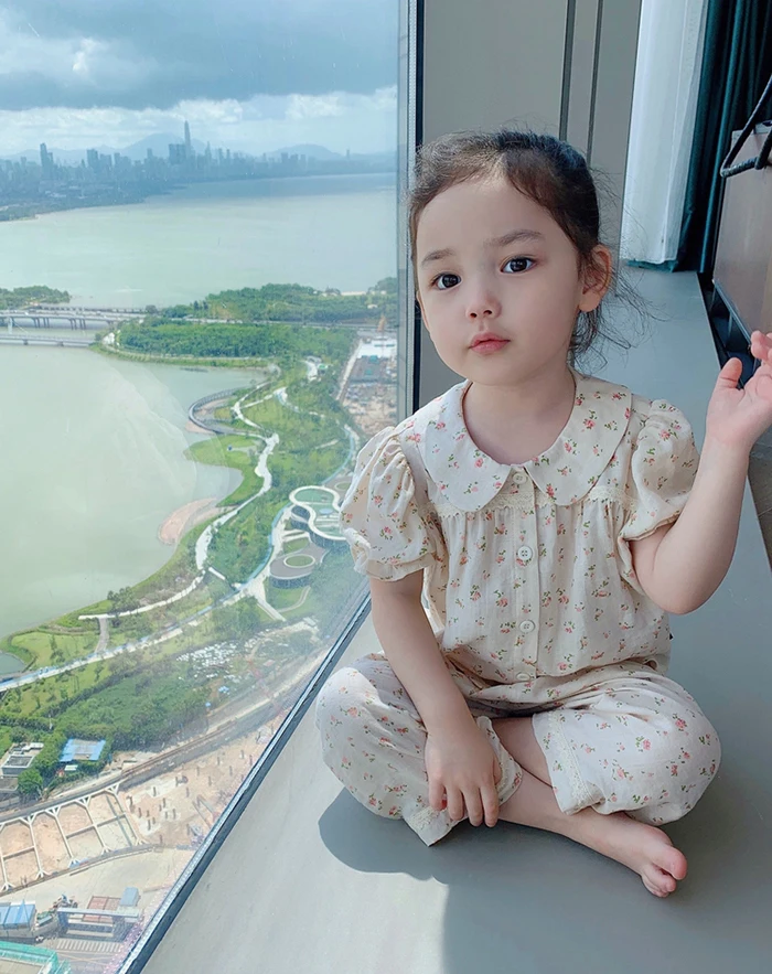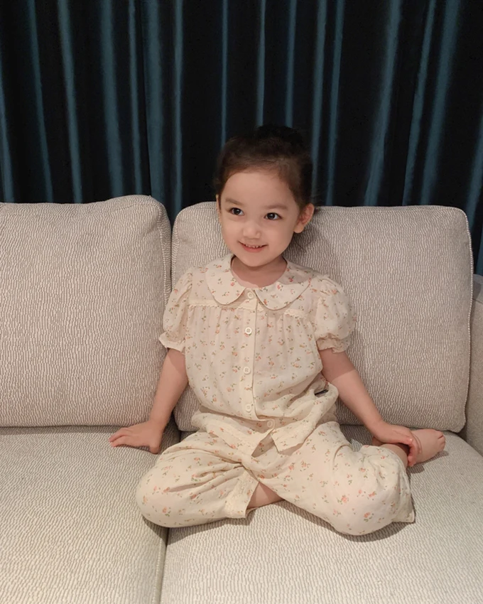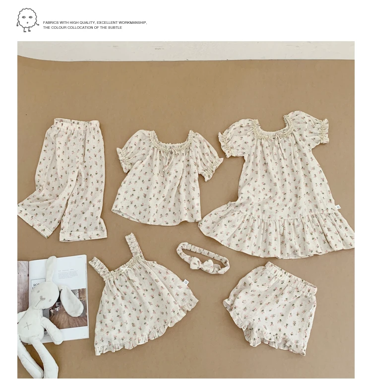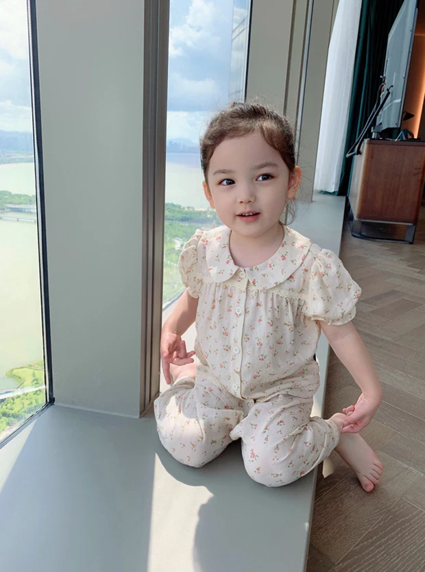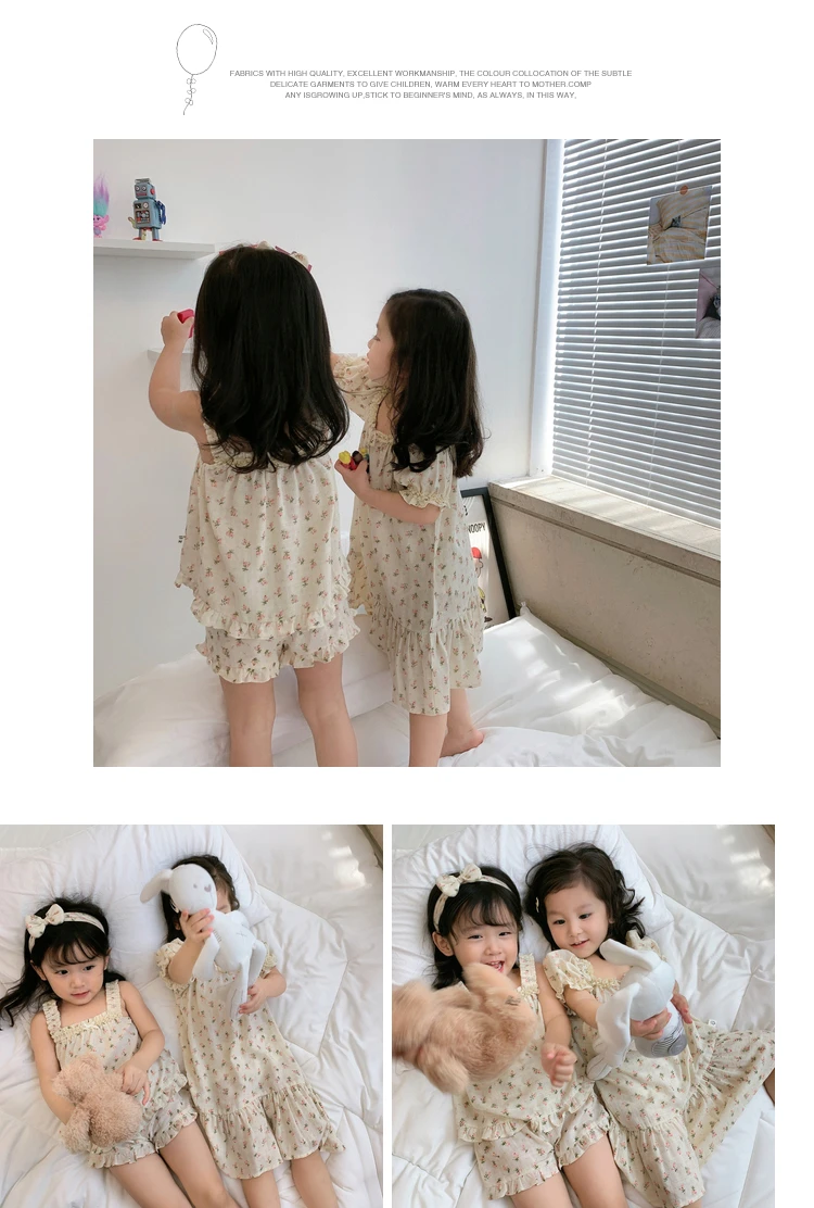 Детские пижамные комплекты с отложным воротником для девочек. Винтажные пижамы с цветочным рисунком и пышными рукавами для малышей. Домашняя одежда для сна. Детская одежда