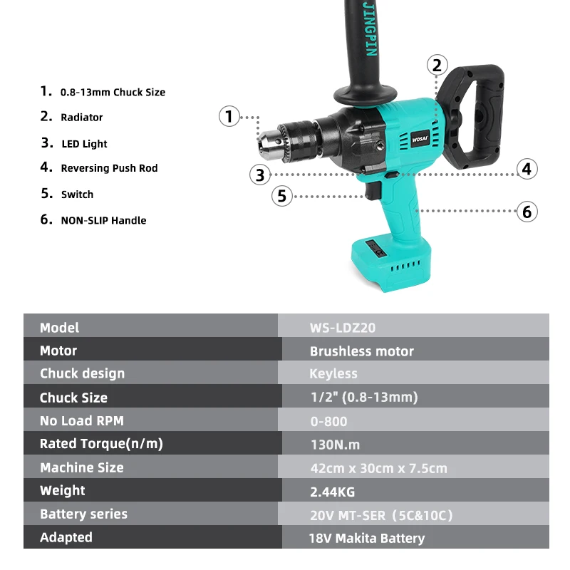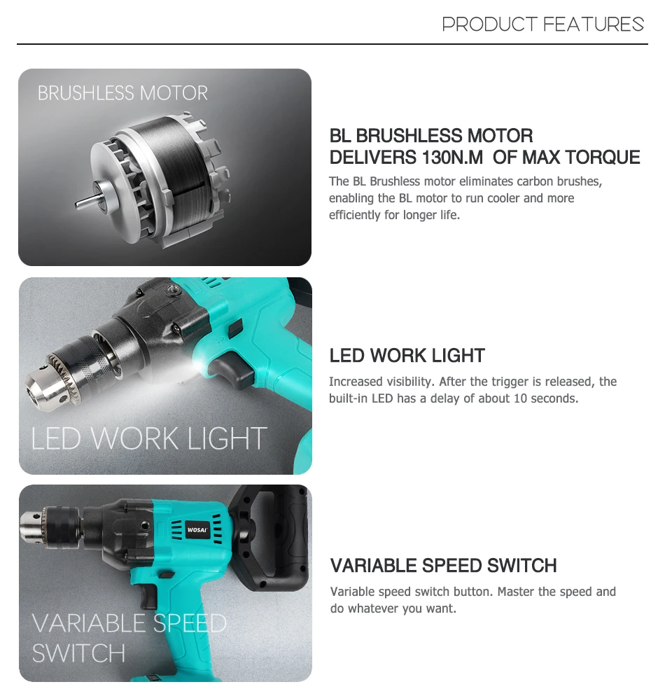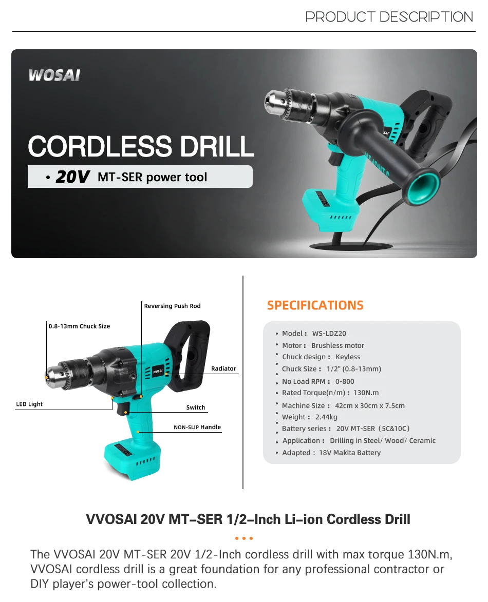Шуруповерт WOSAI аккумуляторный, 130 нм, 18 в, с литиевой батареей Makita